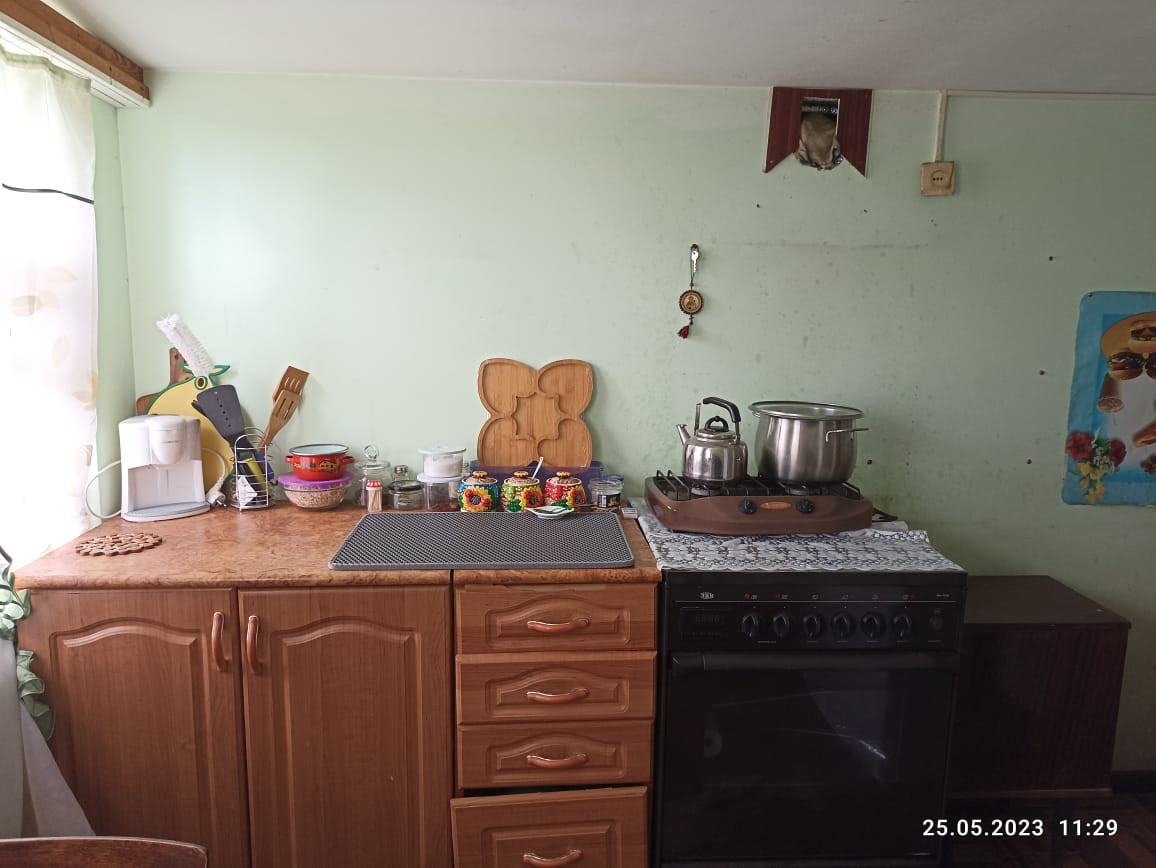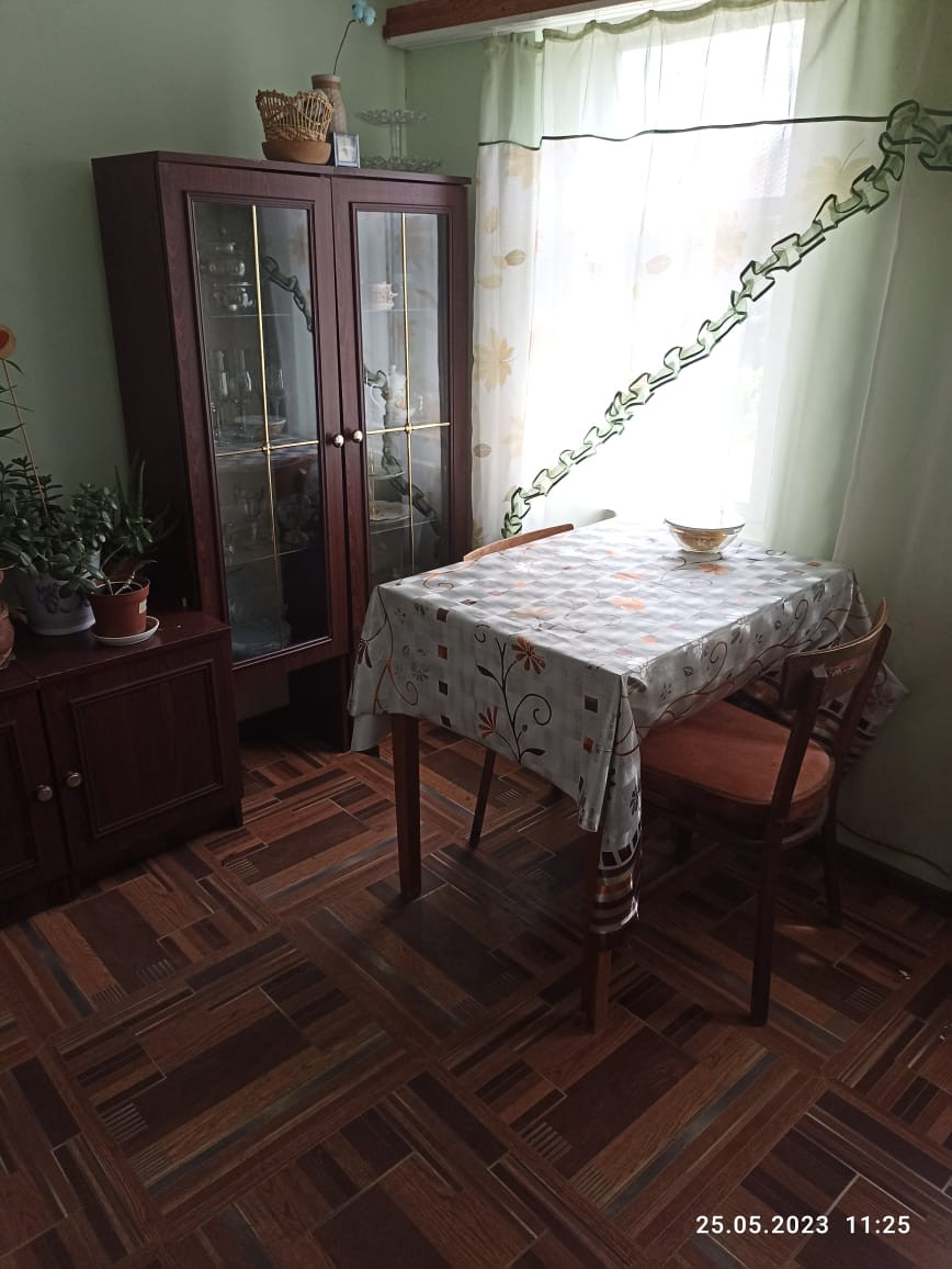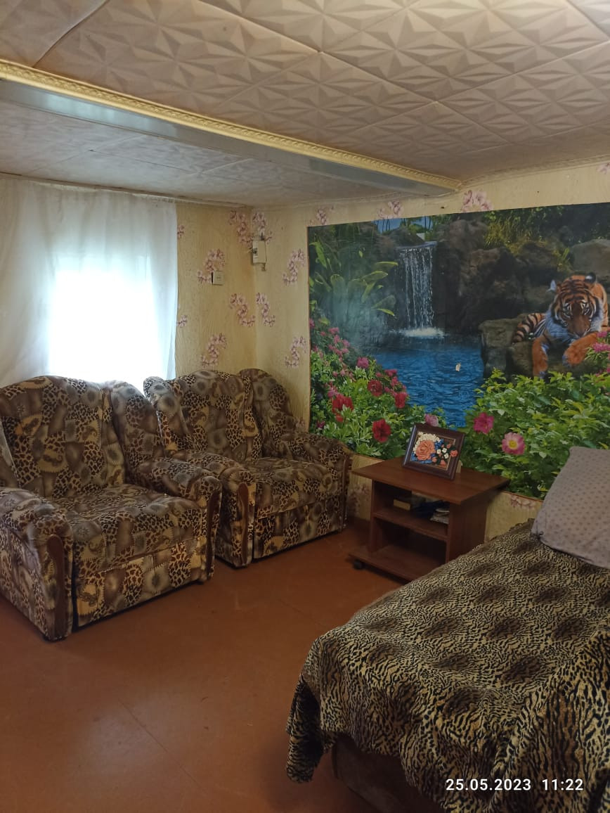 В доме: гостиная, спальная комната, прихожая, кухня , совмещенный санузел. Окна частично пластиковые. Установлены счетчики на свет и газ, отопление - газовая форсунка, горячая вода - водонагреватель, вода – своя скважина. Из хозяйственных построек: гараж, два сарая ( один из них с подвалом и пристроен к дому). Фруктовый сад, огород.