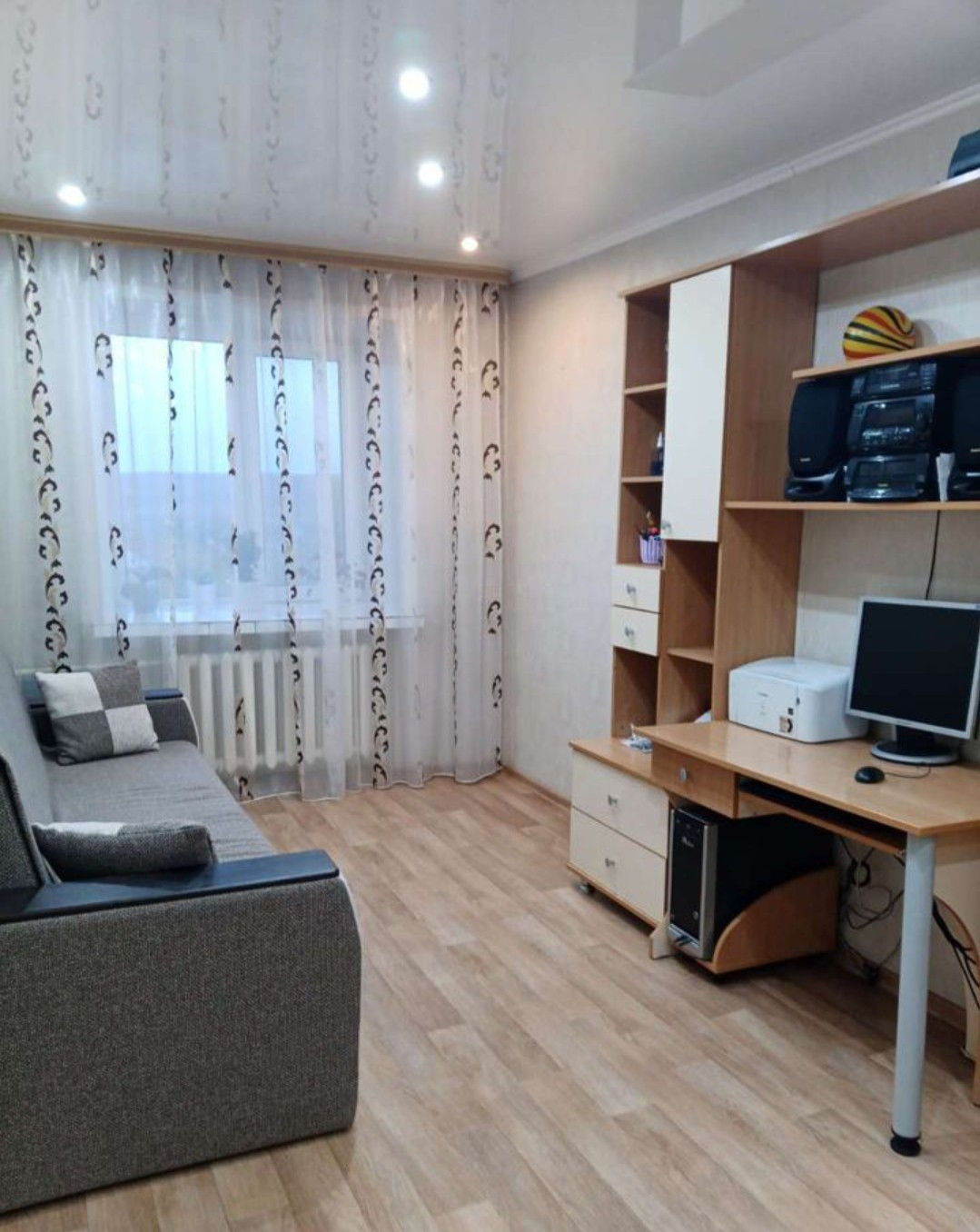 Квартира очень теплая, солнечная, просторная. Хороший ремонт, новый линолеум, натяжные потолки. Новая встроенная кухня в подарок. Межкомнатные двери. Пластиковые окна. Горячая вода в отопительный сезон + водонагреватель. Мебель можем оставить, все по договоренности. Торг. Звоните все варианты можно обсудить.