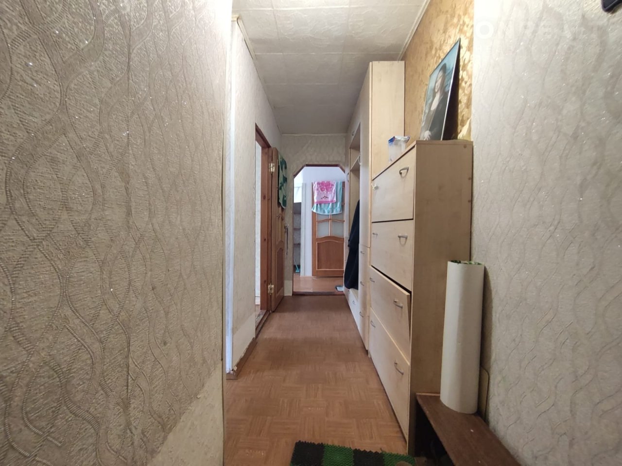 Площадь квартиры - 57,5 кв.м, все коммуникации централизованные (на горячую/холодную воду установлены счетчики учета), комнаты смежно-изолированные, санузел совмещенный, есть сухой подпол, интернет (несколько Провайдеров на выбор), 1/ 5 этажного кирпичного дома, не угловая.