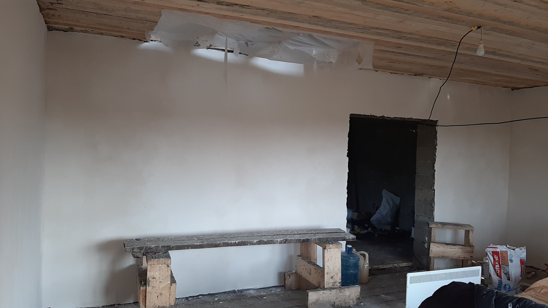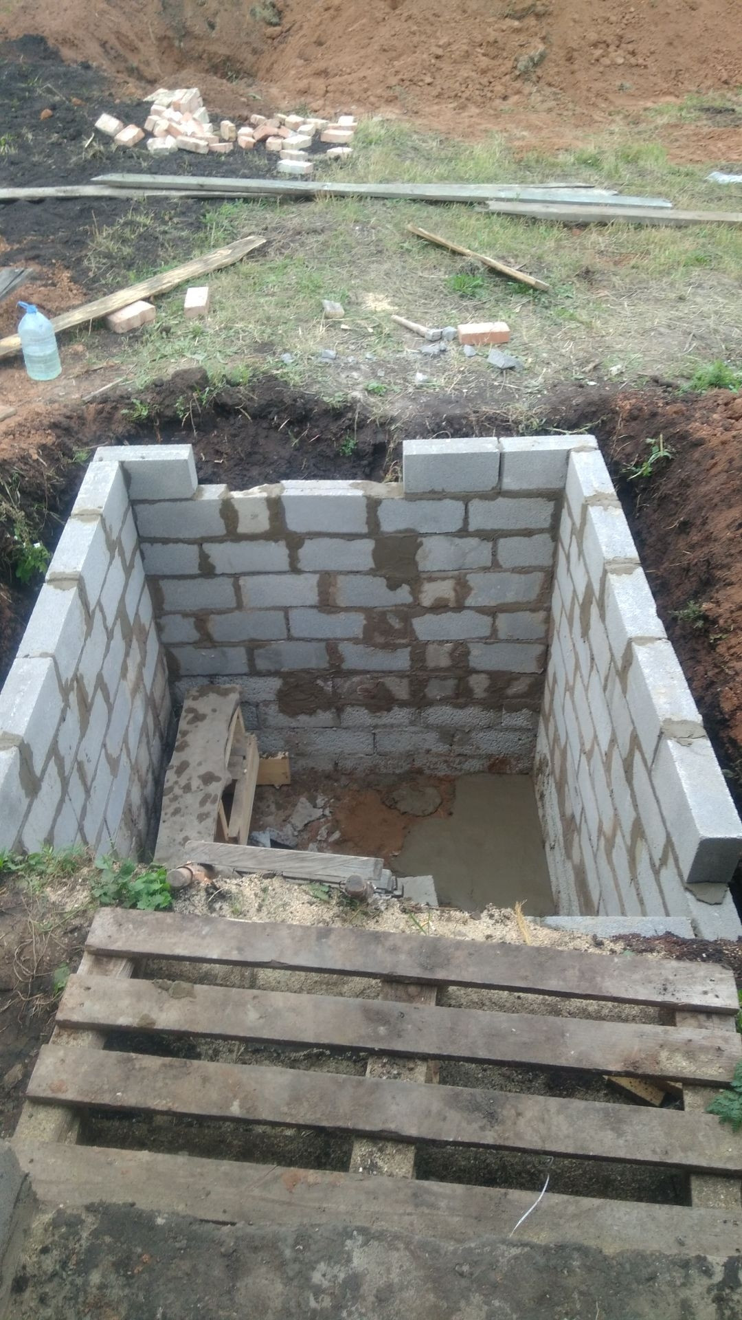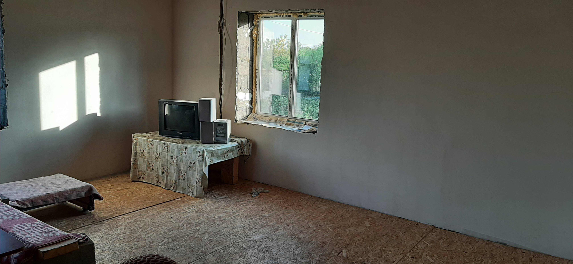 дом (7*10) из шлакоблока. Чистовая  отделка выполнена частично. Проведёно электричество, под пристроем погреб. Территория частично огорожена. По улице проведена газовая труба. Гараж 5*8 из шлакоблока. Канализация.