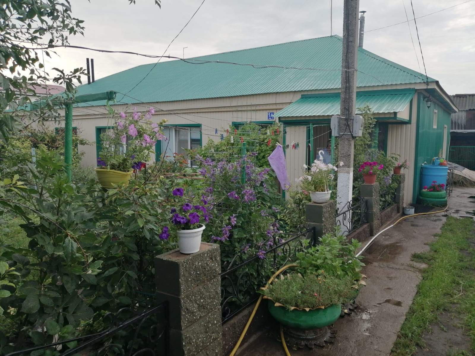 Дом кирпичный, обшитый сайдингом. Крыша, заборы профнастил.