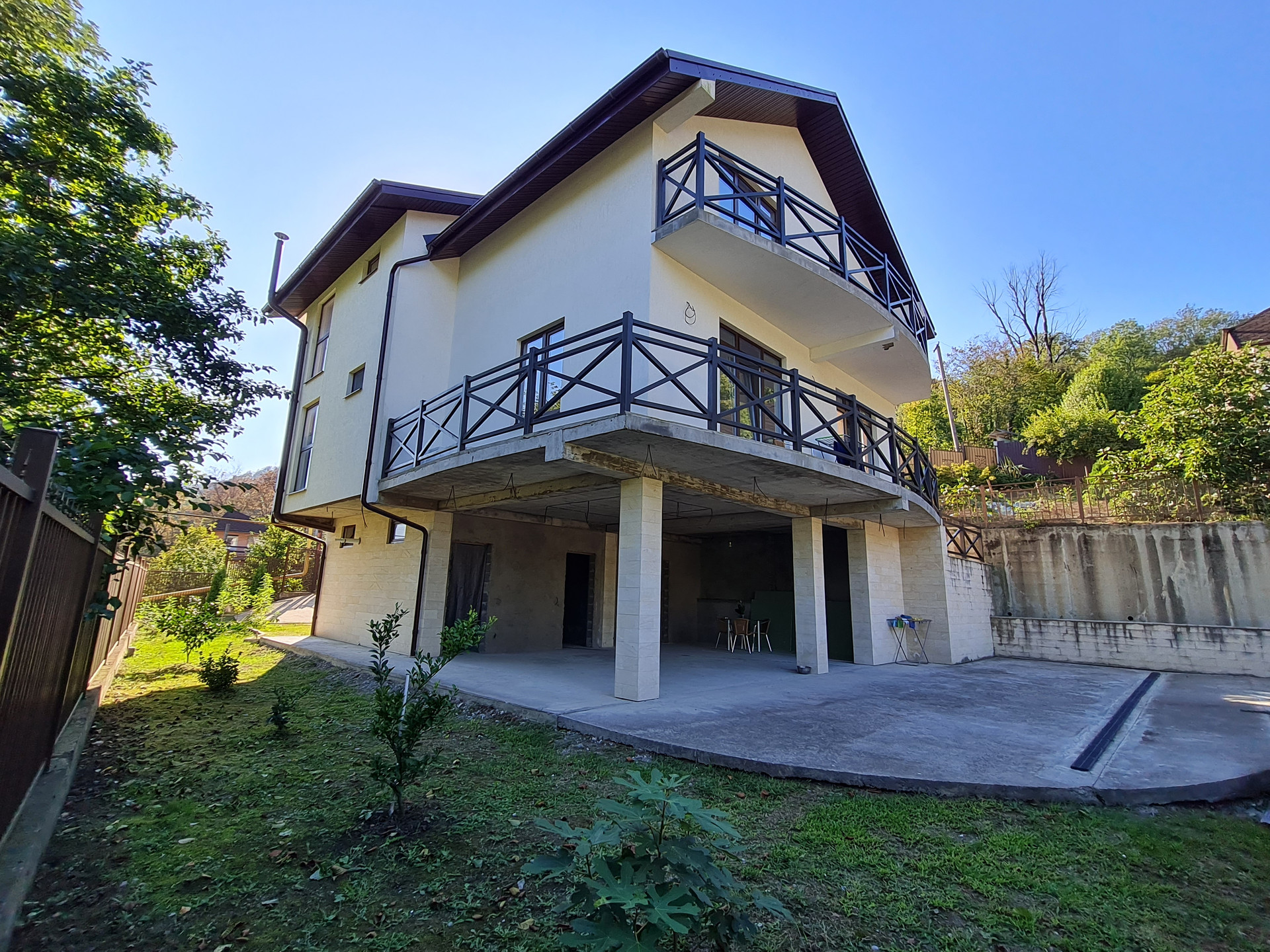 Добротный новый дом с бассейном, общ.площадь 300 м2,  земли 7 сот. в собственности, коммуникации все центральные, газ, интернет, бетонная дорога. Строили для себя по проекту!!! Полная стоимость  в договоре! Можно в ипотеку. 1 эт.с новым ремонтом,  2 эт.: с/у готов, комнаты оставили в чистовой (под покраску или обои) на усмотрение  покупателя. Тихое, красивое место. Во дворе можно припарковать 7 машин. До центра Дагомыса 4 мин. на автомобиле, до центра Сочи 15 мин. До моря, с лучшими, широкими пляжами в Сочи 7-10 мин.