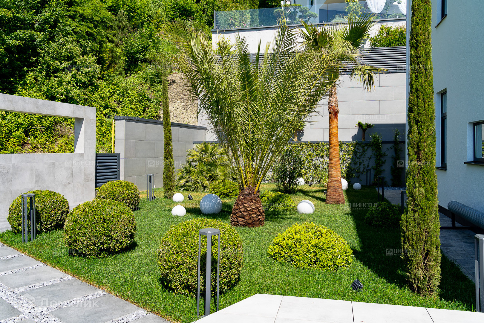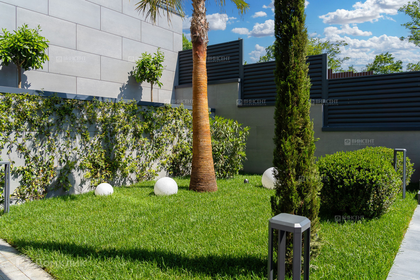 - Воплощенный проект ландшафтного дизайна со всеми необходимыми техническими решениями - автополивом, освещением участка, подсветкой растений, световыми элементами дизайна территории и дренажной системой;