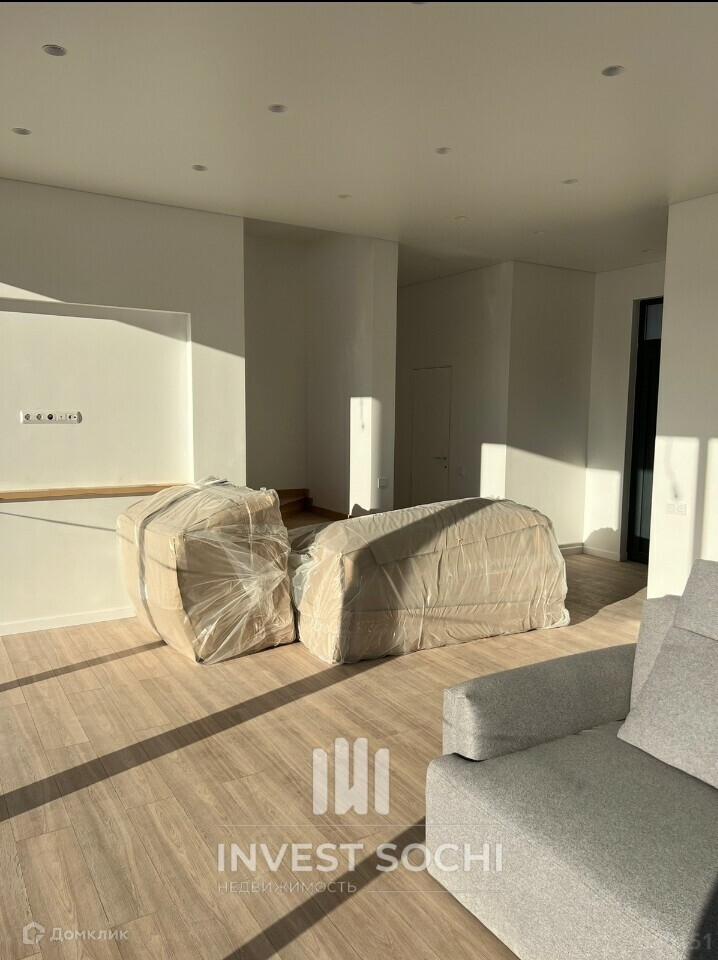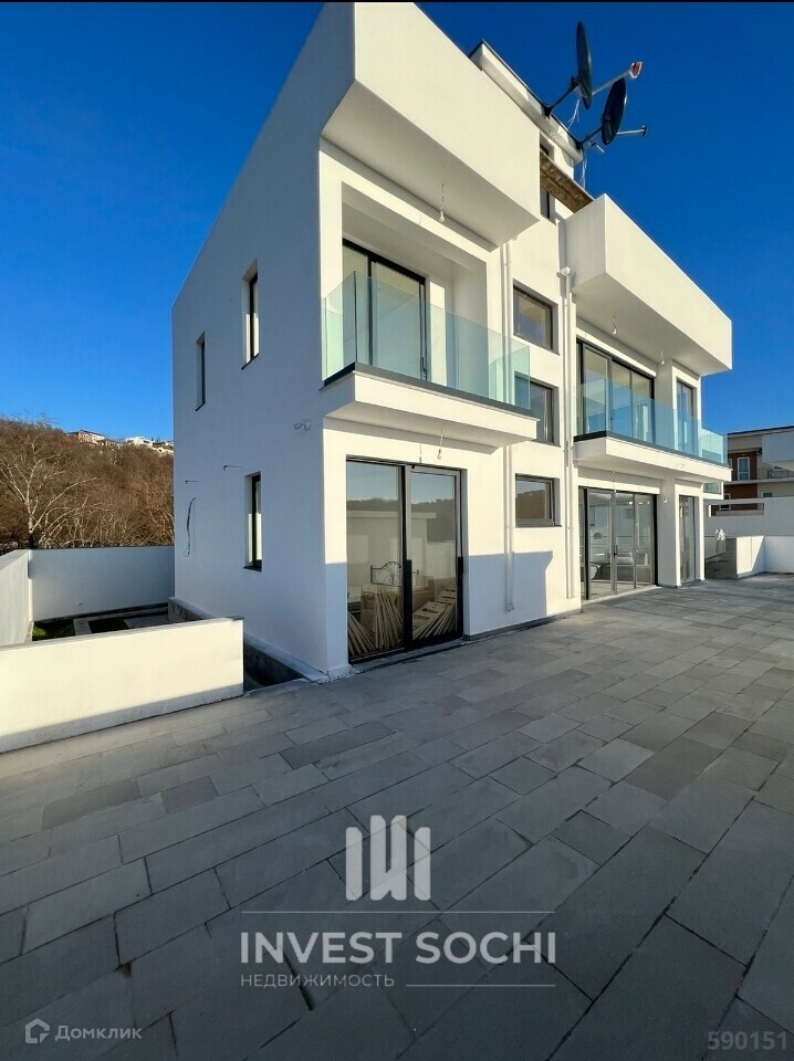 Продаю новый в Дагомысе площадью 205 кв.м. Площадь участка 5 сот.ИЖС, Собственность. Все коммуникации заведены.  Эксплуатируемая  кровля .Огорожен капитальным забором.Рядом новые соседи. Проходит ипотека. ID объекта: 590151
