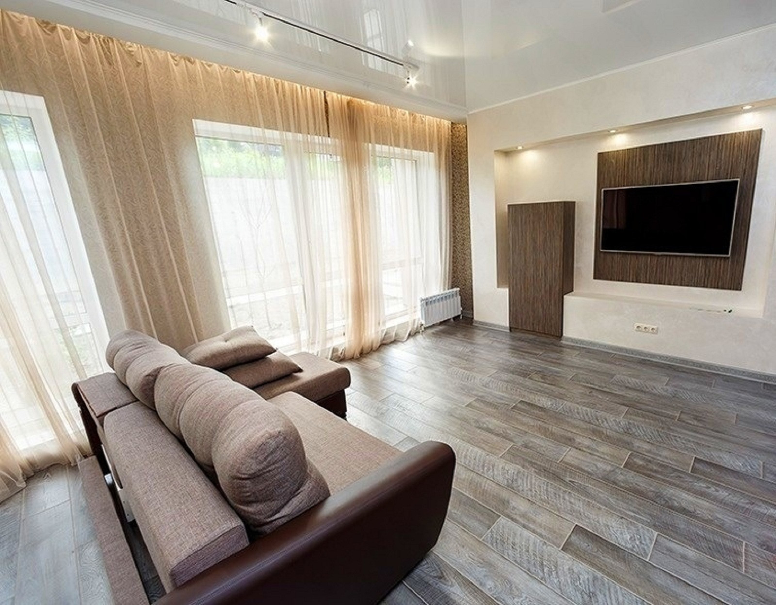 -Просторная гостиная, кухня, гостевая ванная и туалет, прихожая, гардероб.