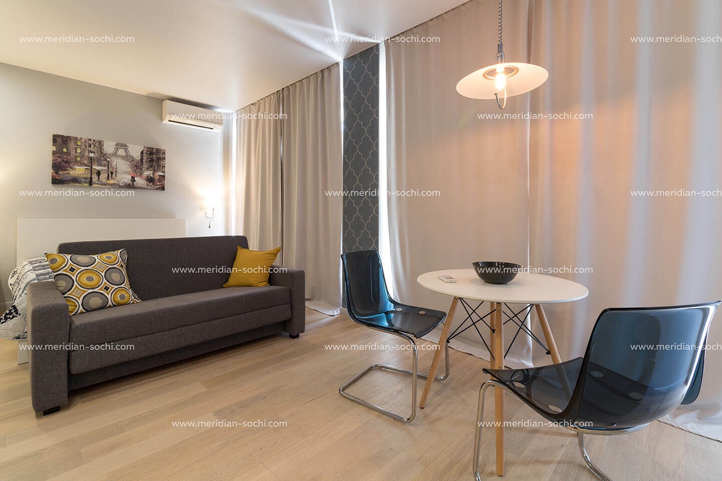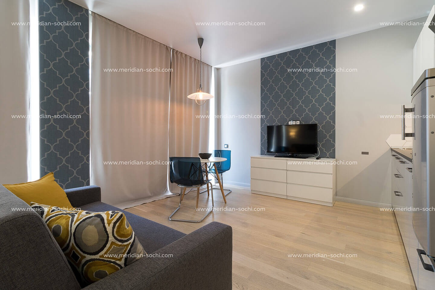 Представляем вашему вниманию апартамент выполненный в скандинавском стиле, расположенный в закрытом комплексе клубного типа «Меридиан». Общая площадь данного лота составляет 42 квадратных метра. Идеально сбалансированная цветовая гамма и фактуры использованных материалов подчеркивают работу дизайнера.
