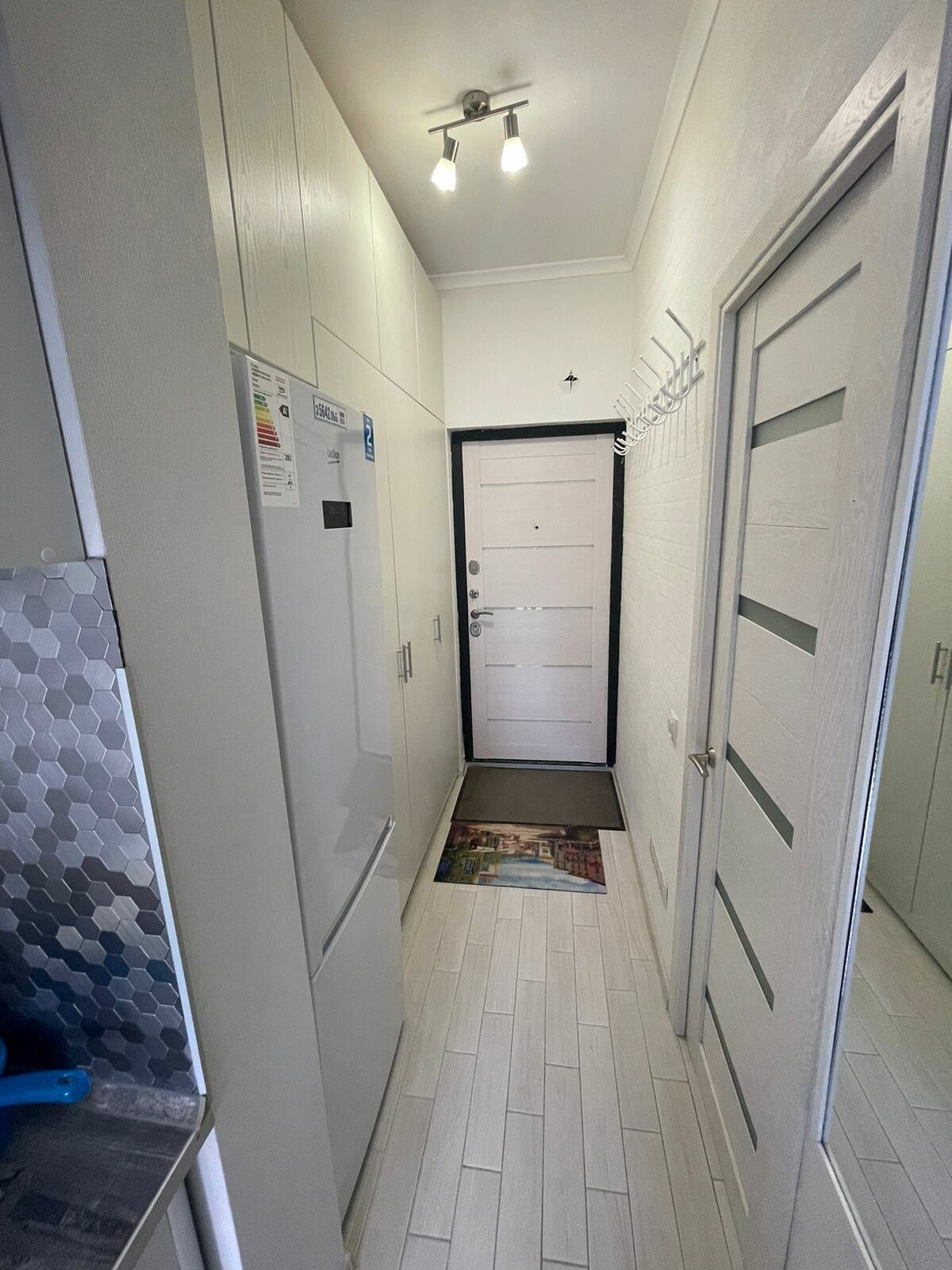 Именно эта квартира в чистовой отделке, никто не жил. Очень красивая входная группа в доме, места общего пользования также с полной отделкой.