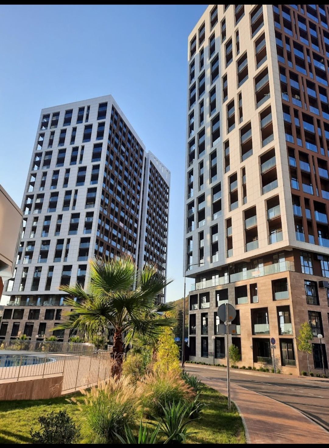 До лучшего пляжа Догомыса 20 мин. пешком. В ЖК свой большой бассейн с зоной отдыха, паркинг, парк и собственный торгово-развлекательный центр "Аллея Молл", кафе, рестораны.