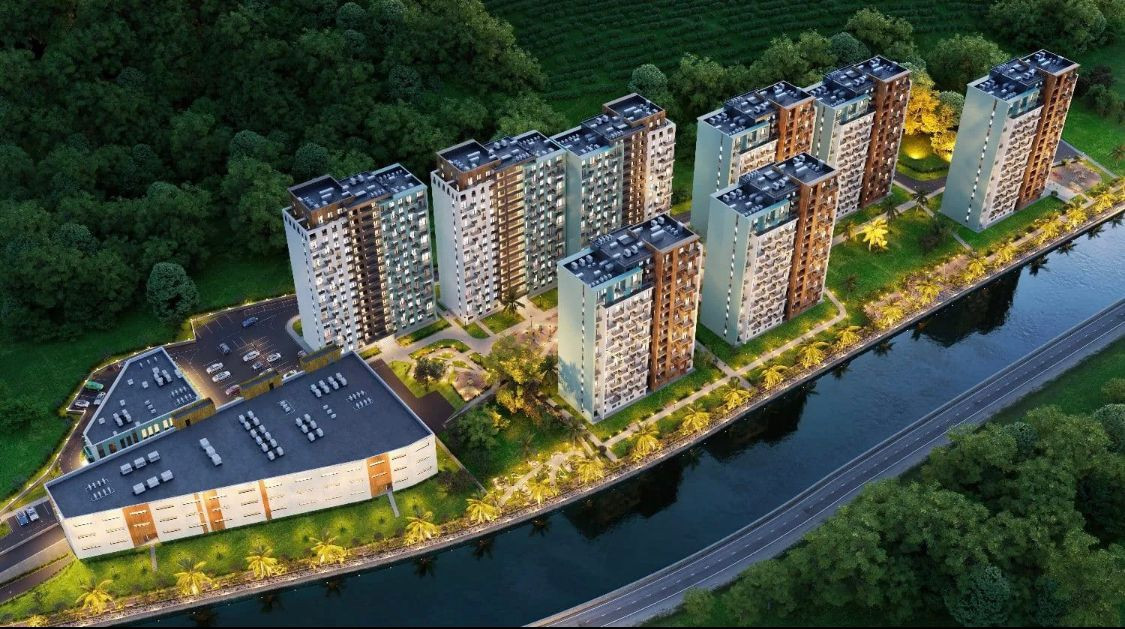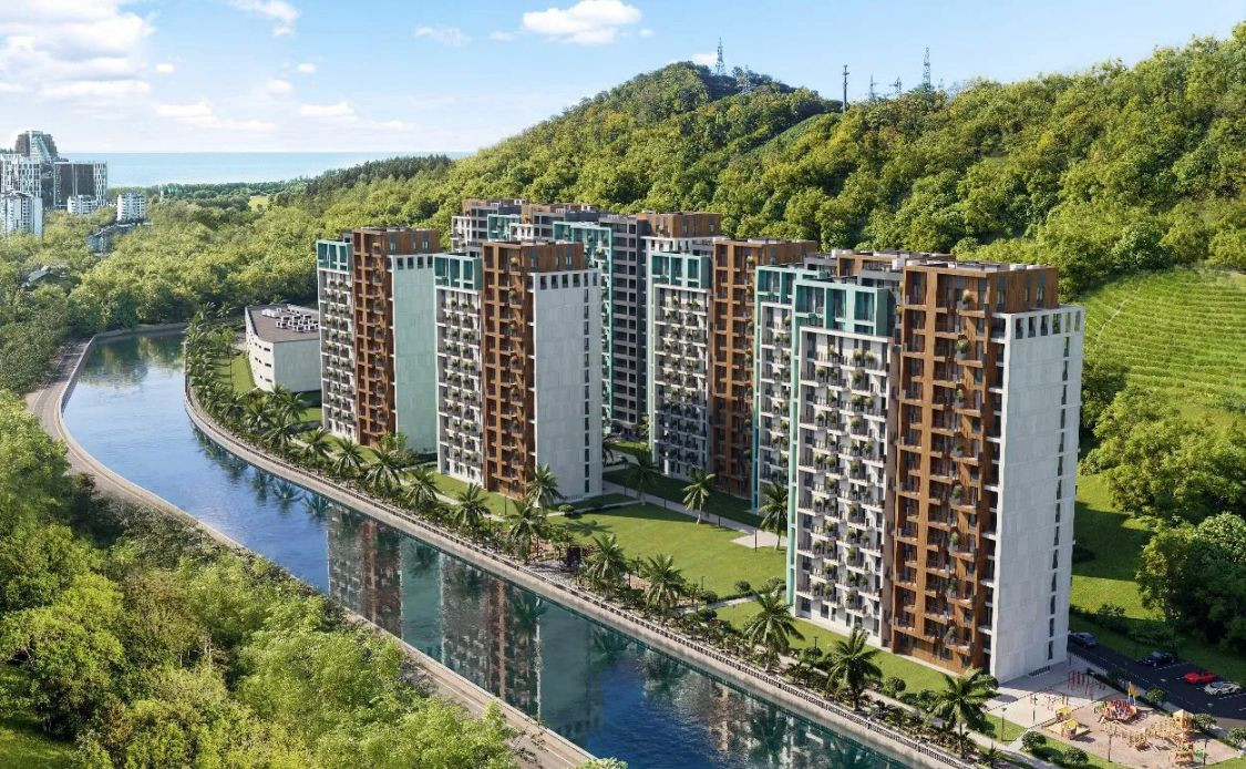 Жилой комплекс расположен на равнинной местности, вдоль реки «Восточный Дагомыс» в зеленой и экологически чистой зоне с видом на чайные плантации, море и горы, с удобной транспортной развязкой.