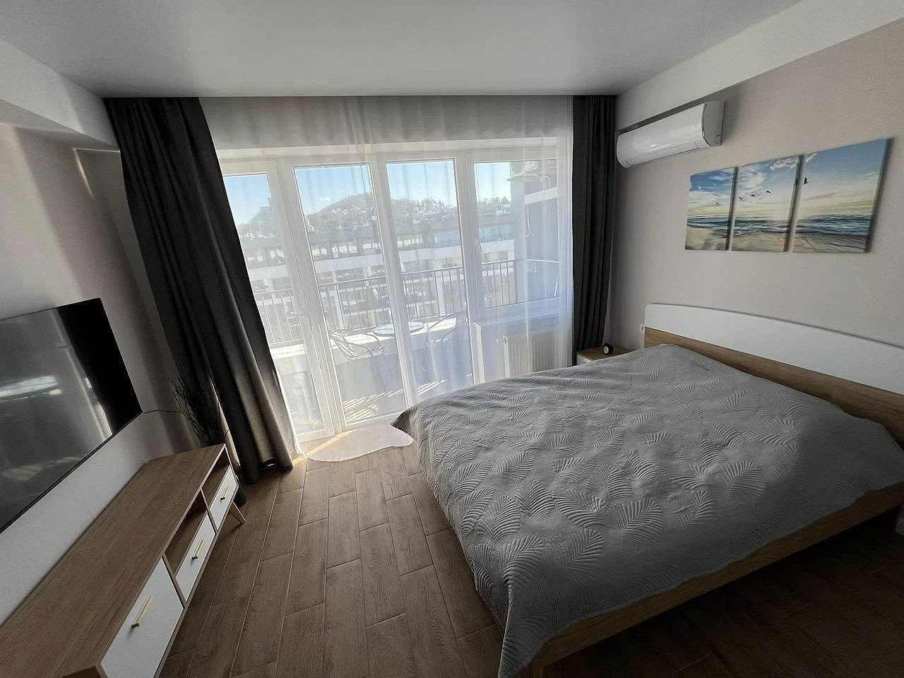 Так же входит в стоимость новая кровать, матрас, шкаф плательный , тумба под ТВ, комод с открытыми ящиками, шторы, тюль, стол и стулья на балконе.