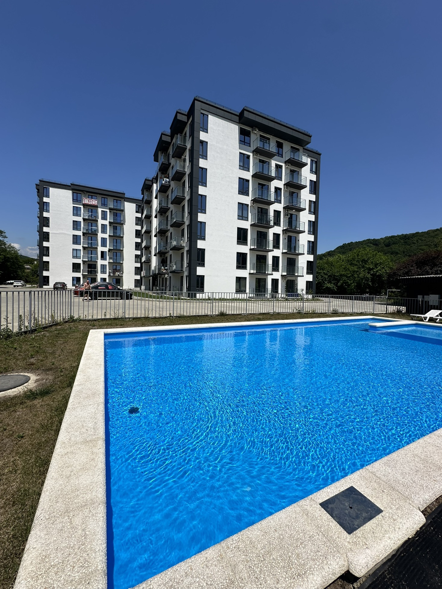 Комплекс находится на закрытой территории, есть детская площадка, зона барбекю, парковка.