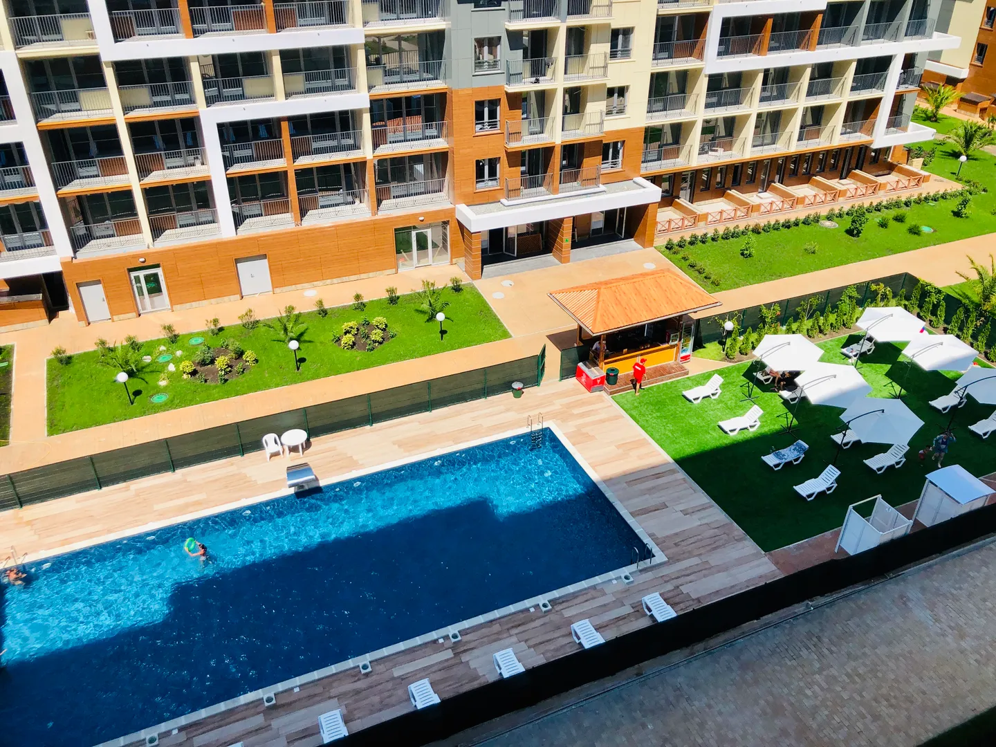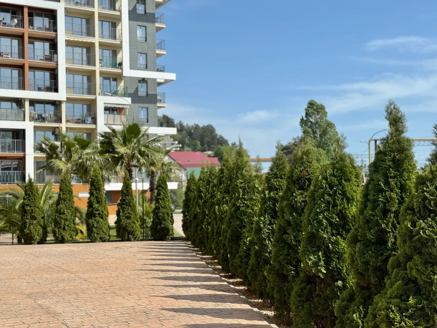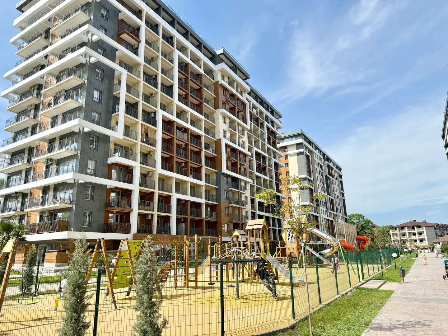 Зaкpытый жилой комплекc c бacceйнoм, дeтскими и спopтивными площaдкaми, зонaми отдыxa.