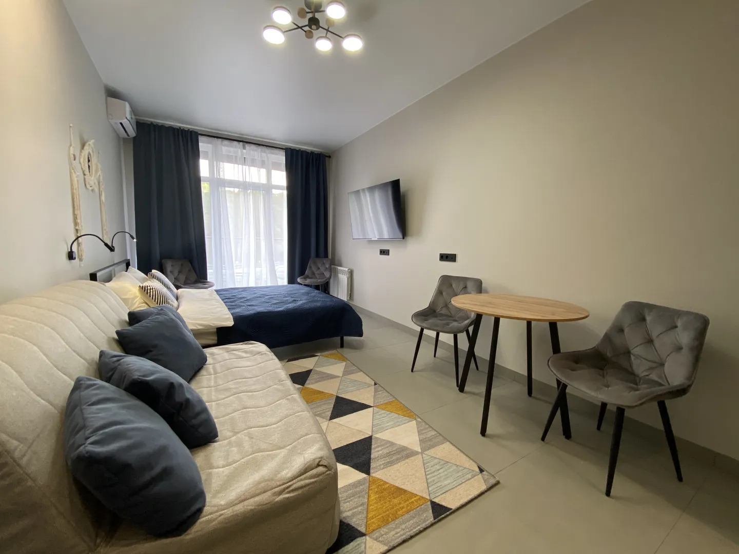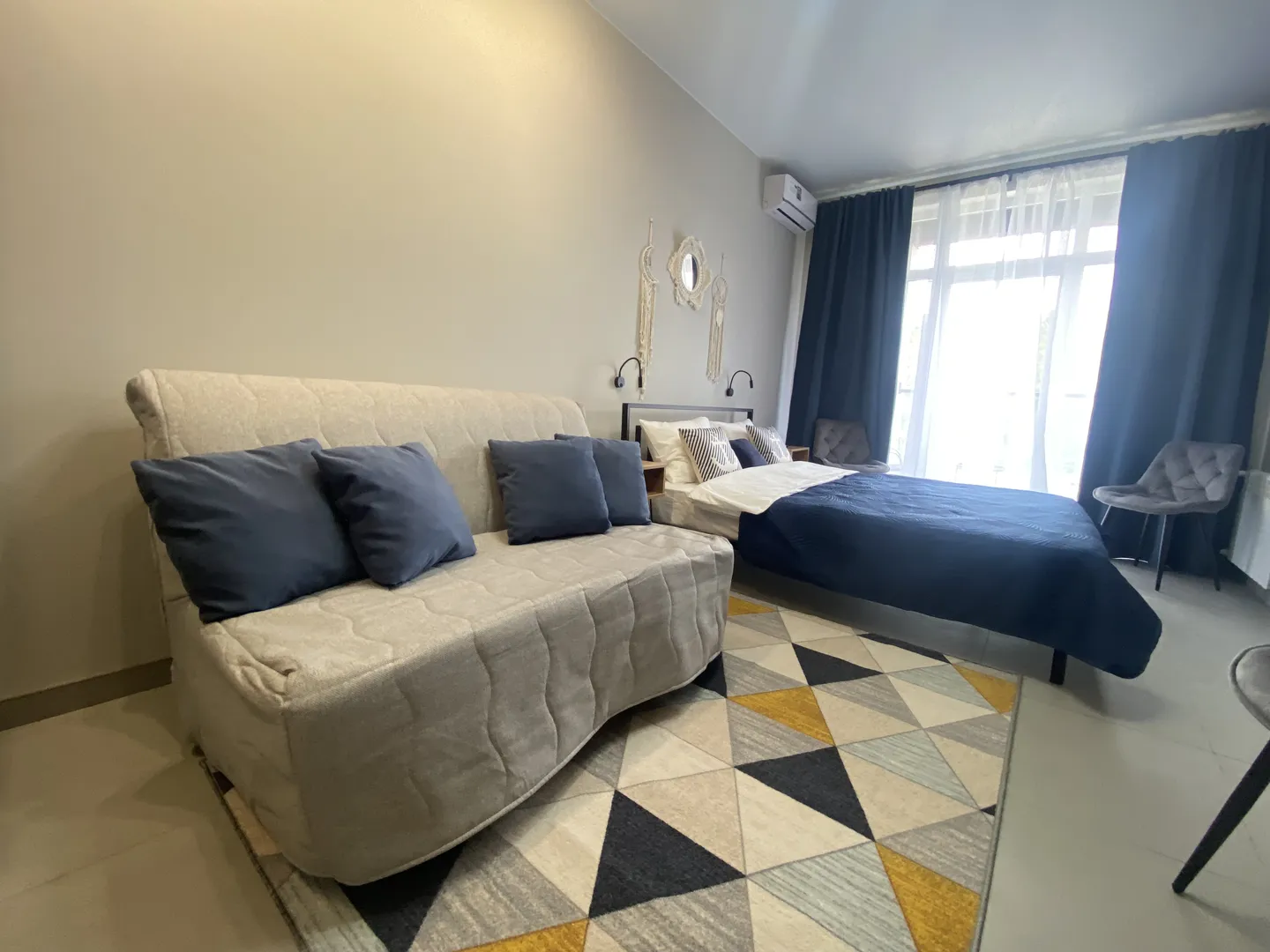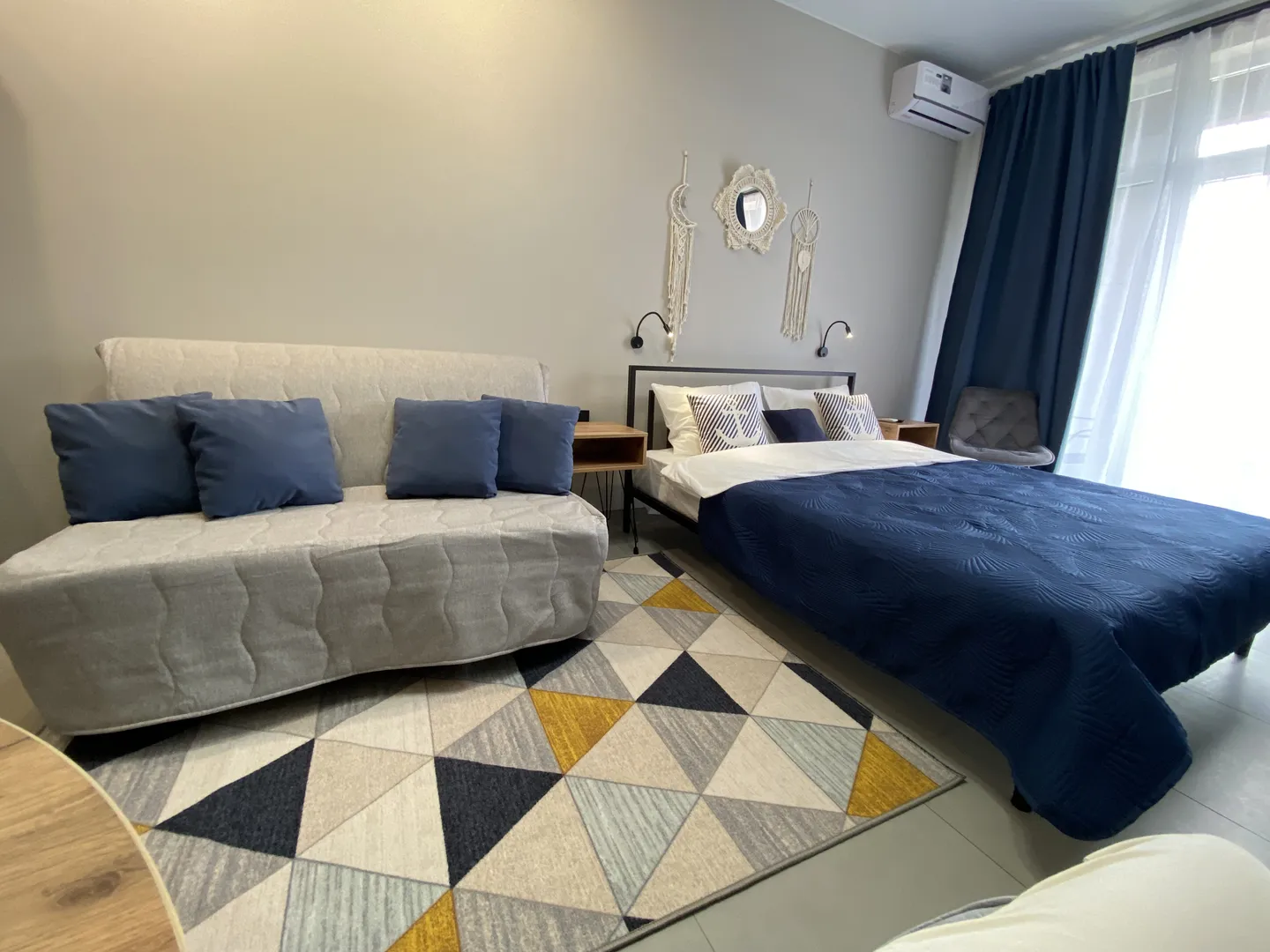 В квартире есть двуспальная кровать, и комфортный двуспальный диван.