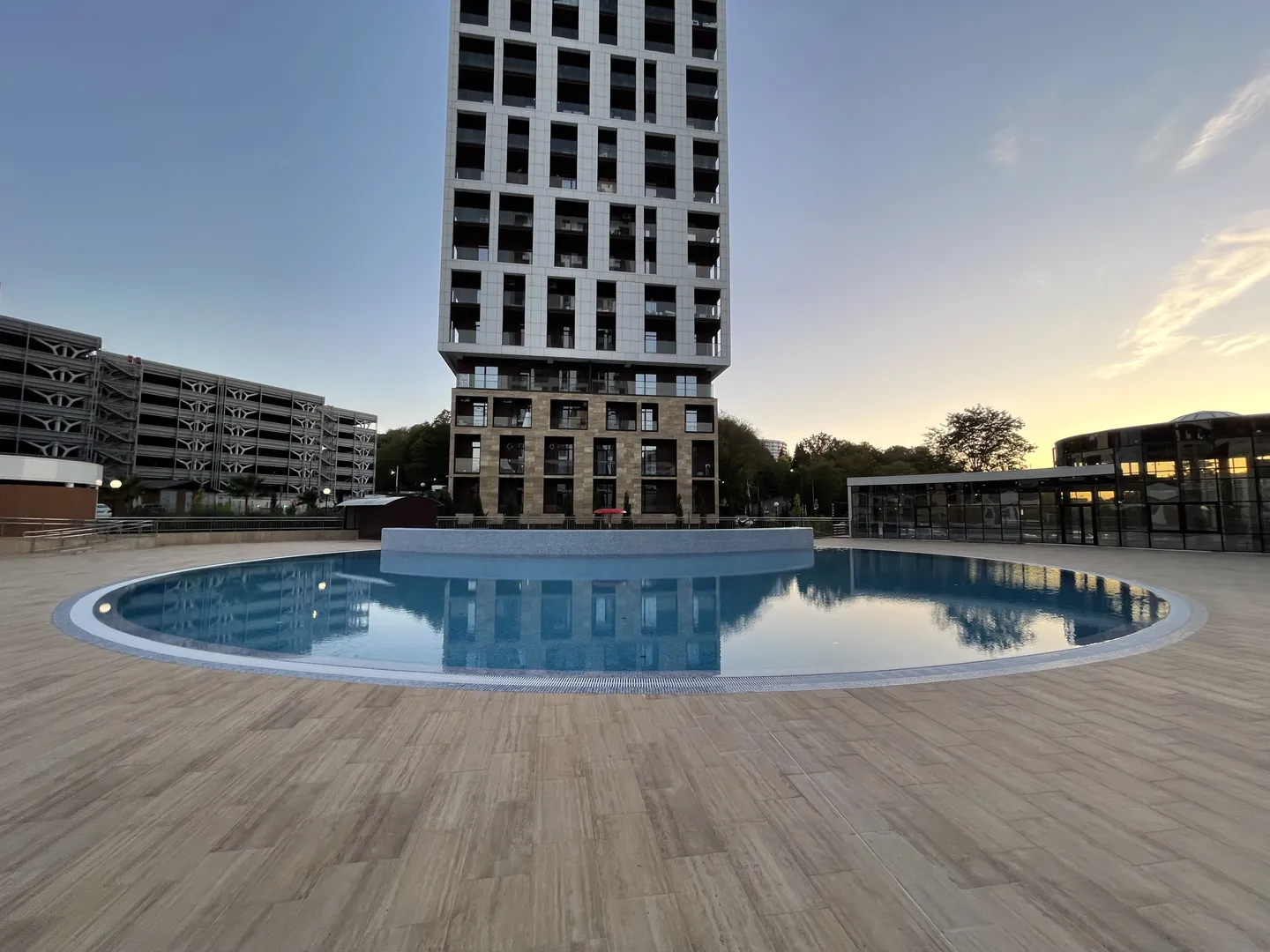 В комплексе закрытая, охраняемая территория для вашей безопасности, детские площадки, бассейн, придомовой и многоуровневый паркинг.