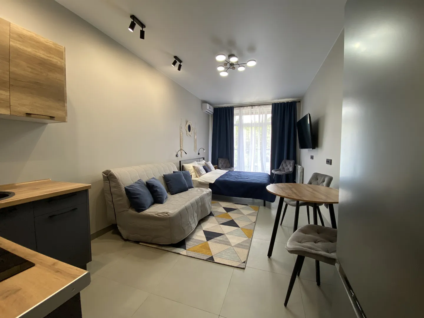 В квартире есть TV, холодильник, микроволновая печь, кондиционер.