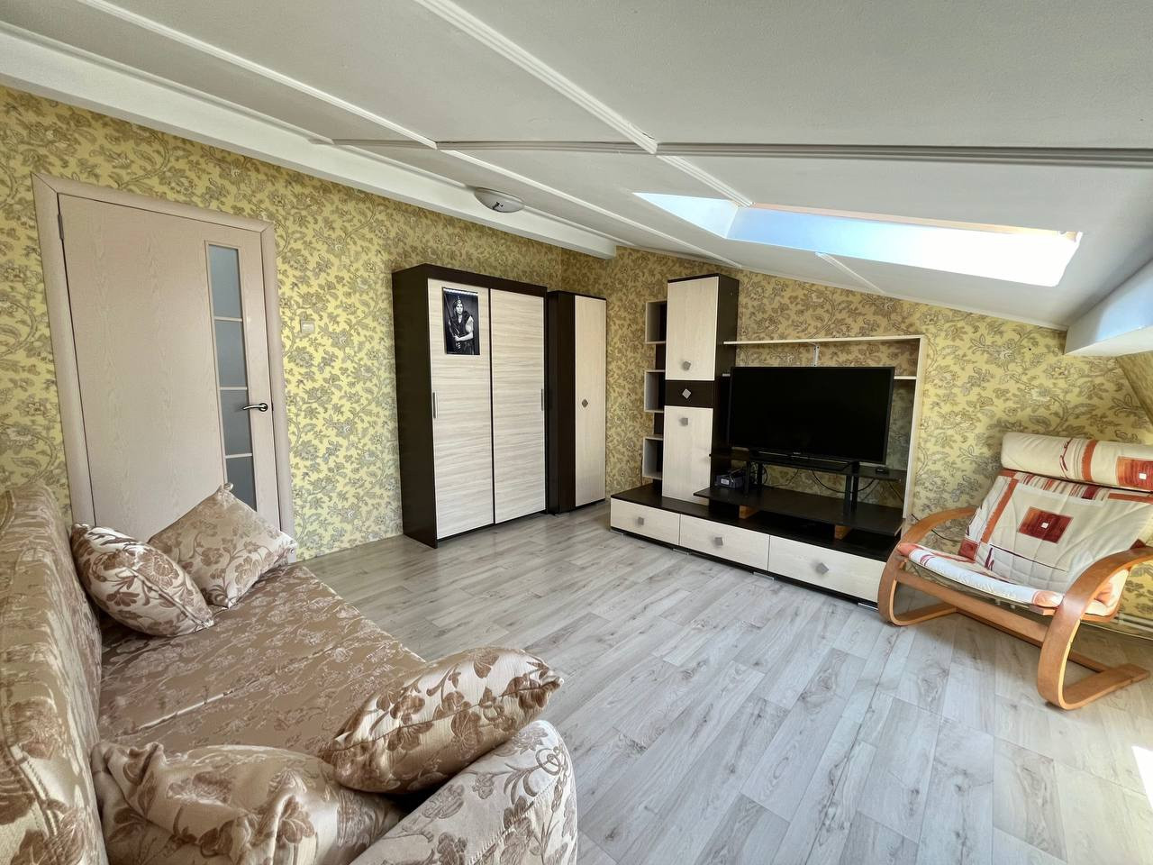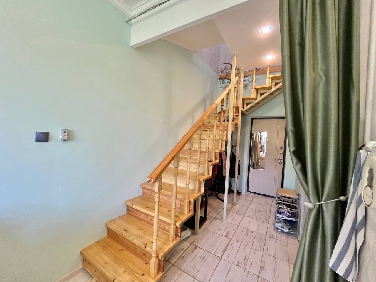 - Трехкомнатная двухуровневая квартира. На первом этаже - просторная кухня-гостиная с выходом на балкон. На втором этаже - три отдельные комнаты.