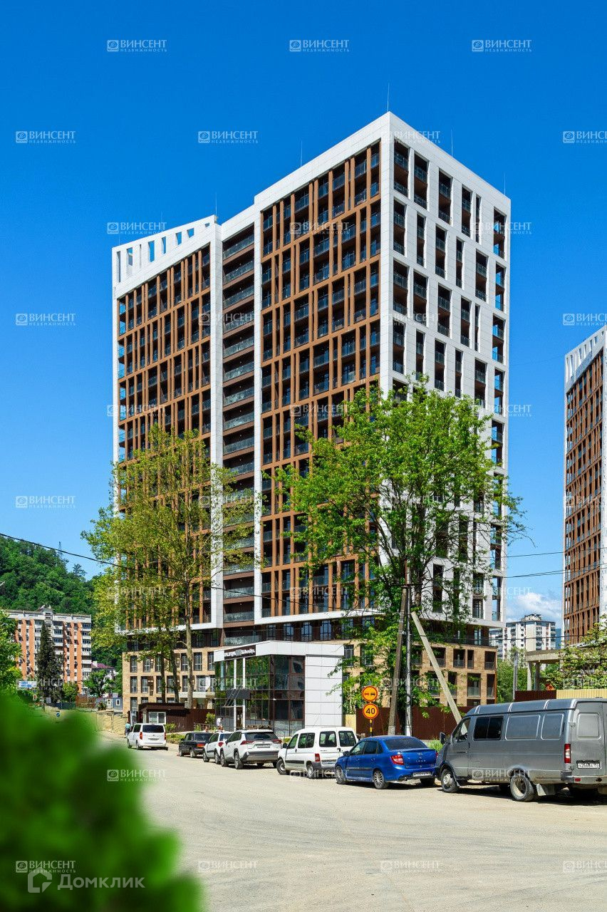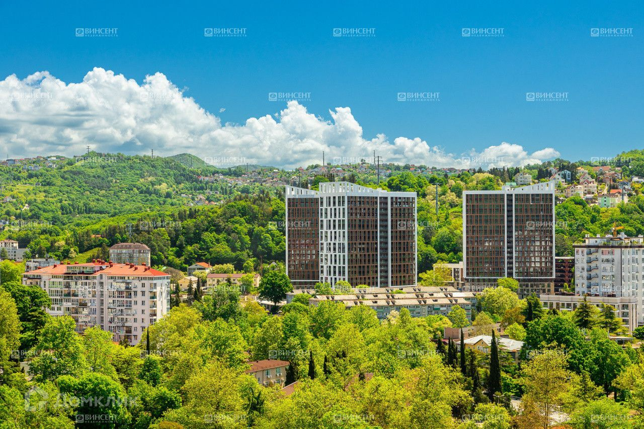 Новый жилой комплекс бизнес класса. Закрытая охраняемая территория с собственной инфраструктурой- кафе, бассейн, детские и спортивные площадки,  прогулочные зоны.Дагомыс, ровная местность окруженное горами и национальным парком . Этот район прекрасно подходит для комфортной жизни и отдыха, так как вся социальная и развлекательная инфраструктура в шаговой доступности. Лучший пляж города со статусом Голубой флаг.