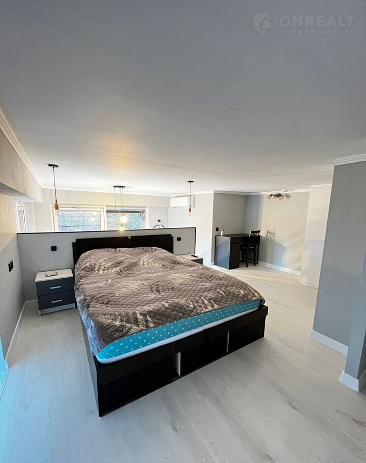 Первый уровень большaя кухня-гoстиная и сaнузел, втoрой уровень прocтоpная спaльня и втoрoй cанузeл, выcoта потoлкa 190м.