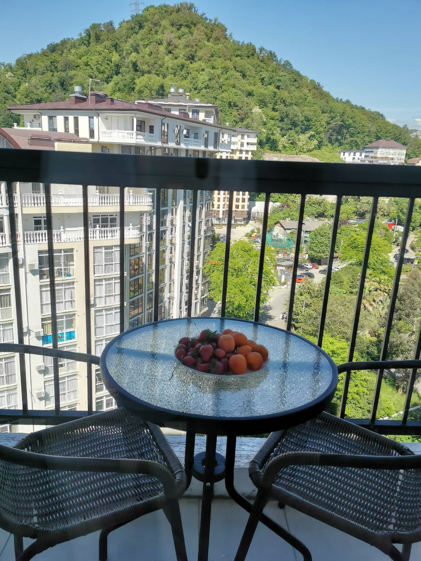 Из окна красивый вид на горы.