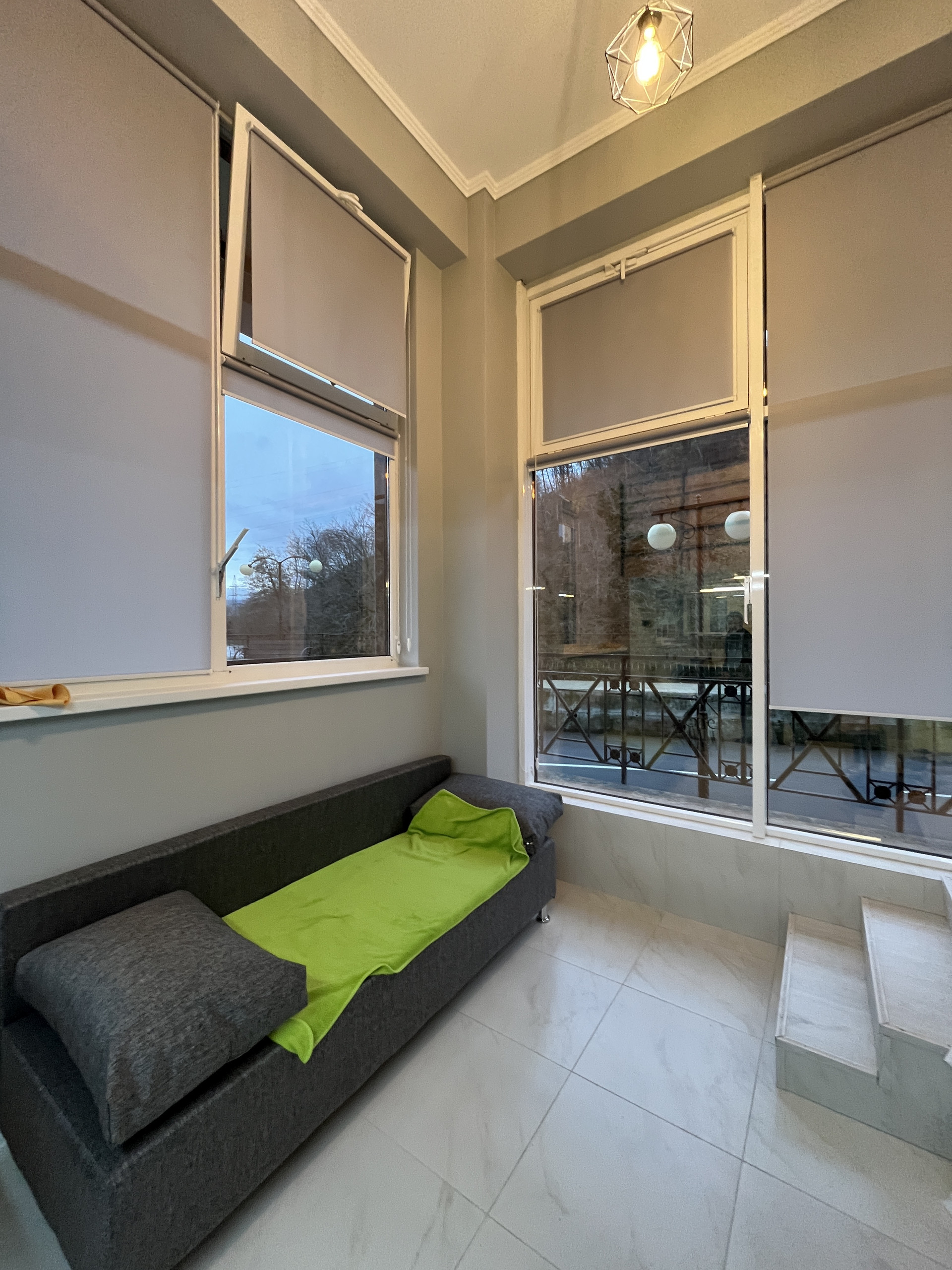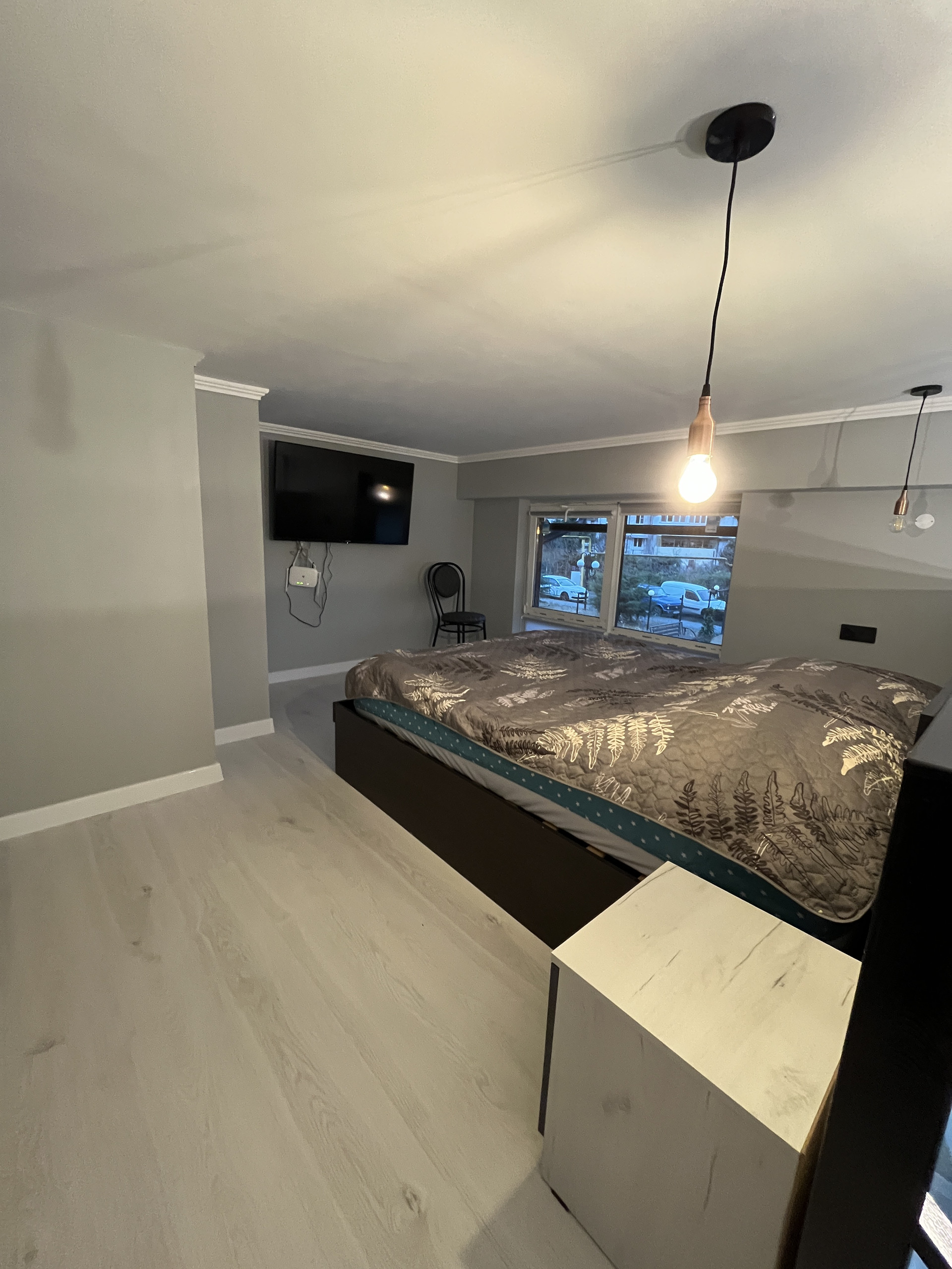 2 этаж - двуспальная кровать, рабочий стол, телевизор, санузел.