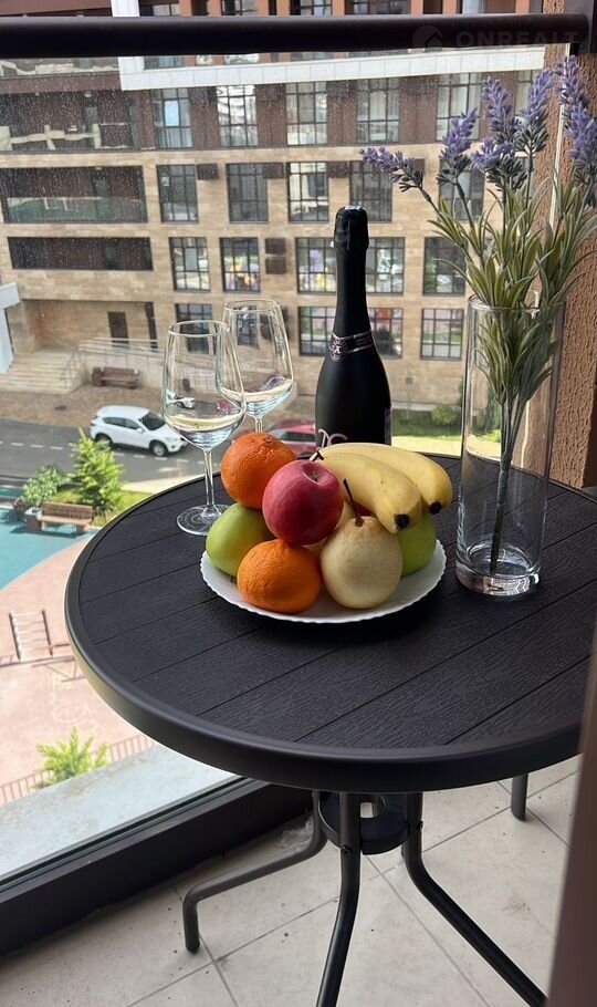 На территории комплекса красивый ландшафтный дизайн, пальмы, различные зеленые насаждения, спортивные и детские площадки. Бонус бесплатно включена закрытая парковка за шлагбаумом. Пляжные принадлежности: коврик двух местный и палатка от солнца для пляжа