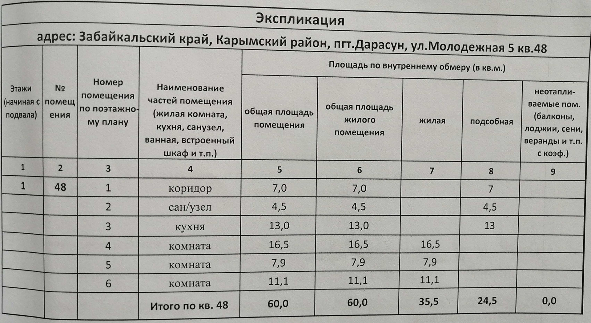 3-комнатная квартира, 60 м2, этаж 1 / 5, на продажу в поселке городского типа Дарасун, Молодёжная улица, 5