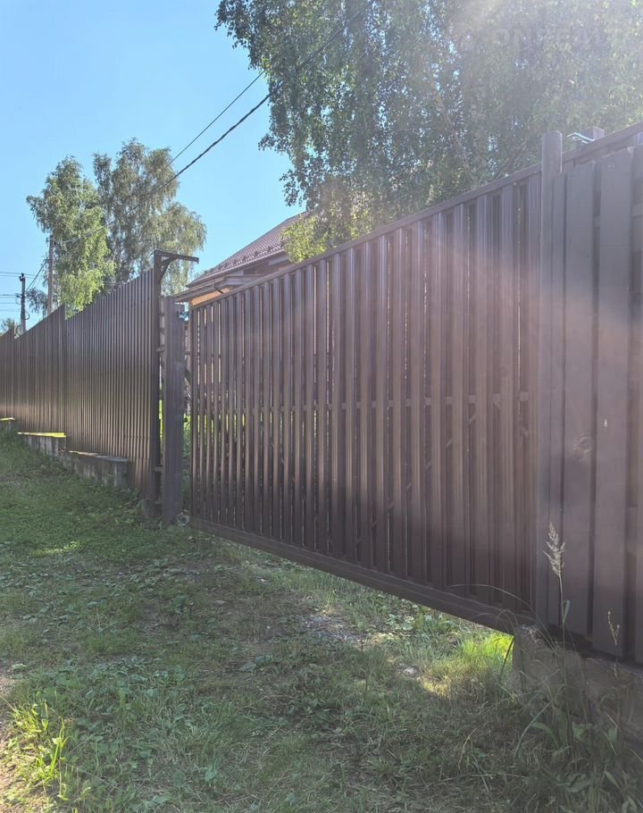 Участок 7,5 соток. Огорожен забором из металлопрофиля, откатные ворота. Свои насаждения с живыми соснами. Хозблок, мангальная зона.