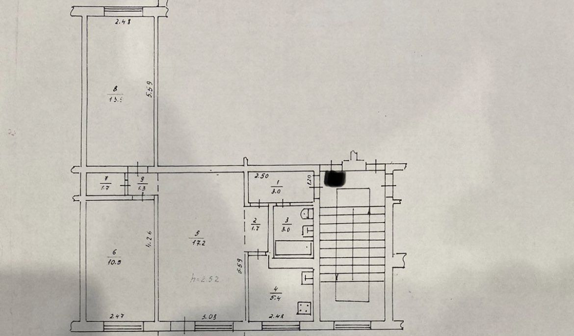 Высота потолков 2.54 м
