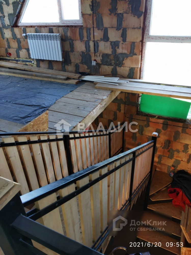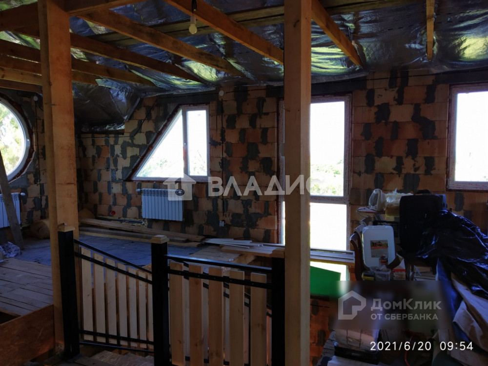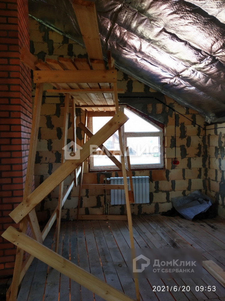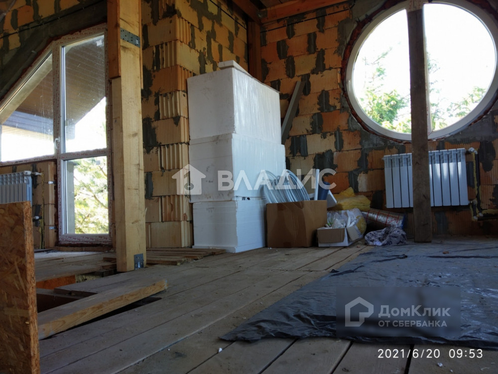 Дом площадью 154.4 квм готов частично. Кирпичные стены и крыша утеплены. Электричество и отопление разведено (первый этаж -  теплый пол, второй  -  радиаторы). Первый этаж: прихожая 15.4 квм, кухня – столовая 32квм, комната отдыха 37 квм, терраса. Второй этаж: холл 21 квм, комнаты 33 квм и 16 квм, балкон 4 квм