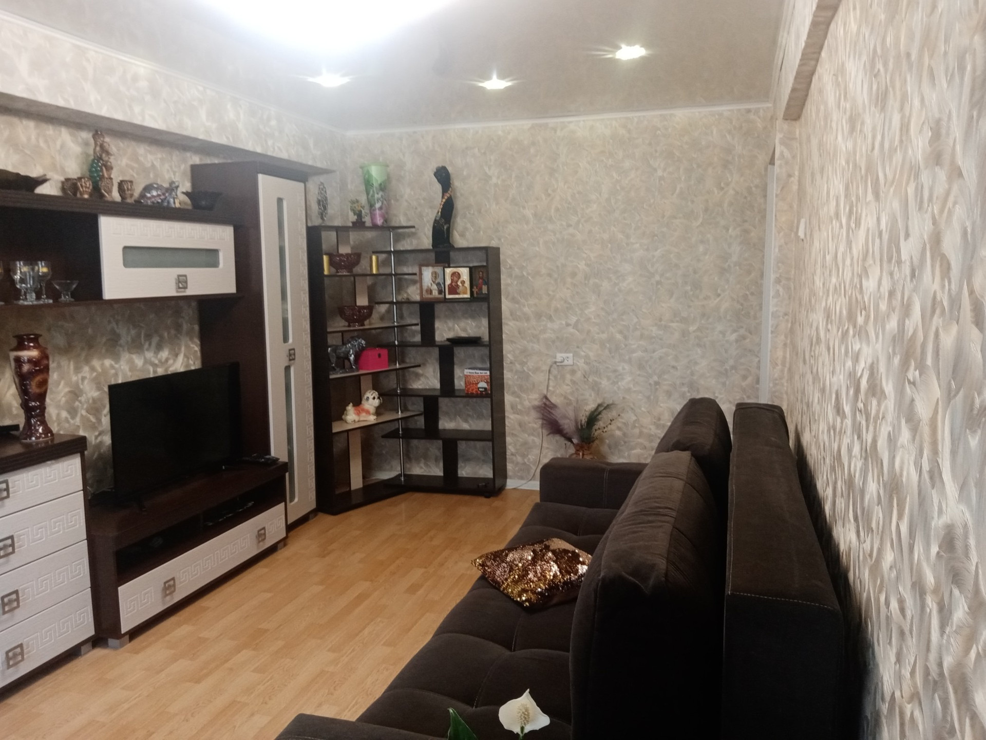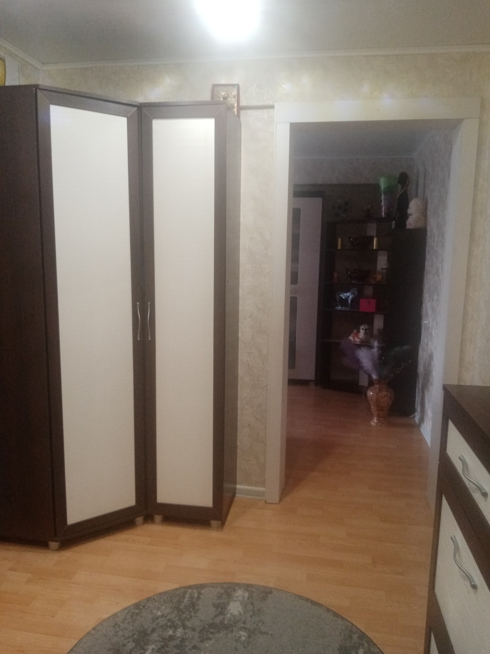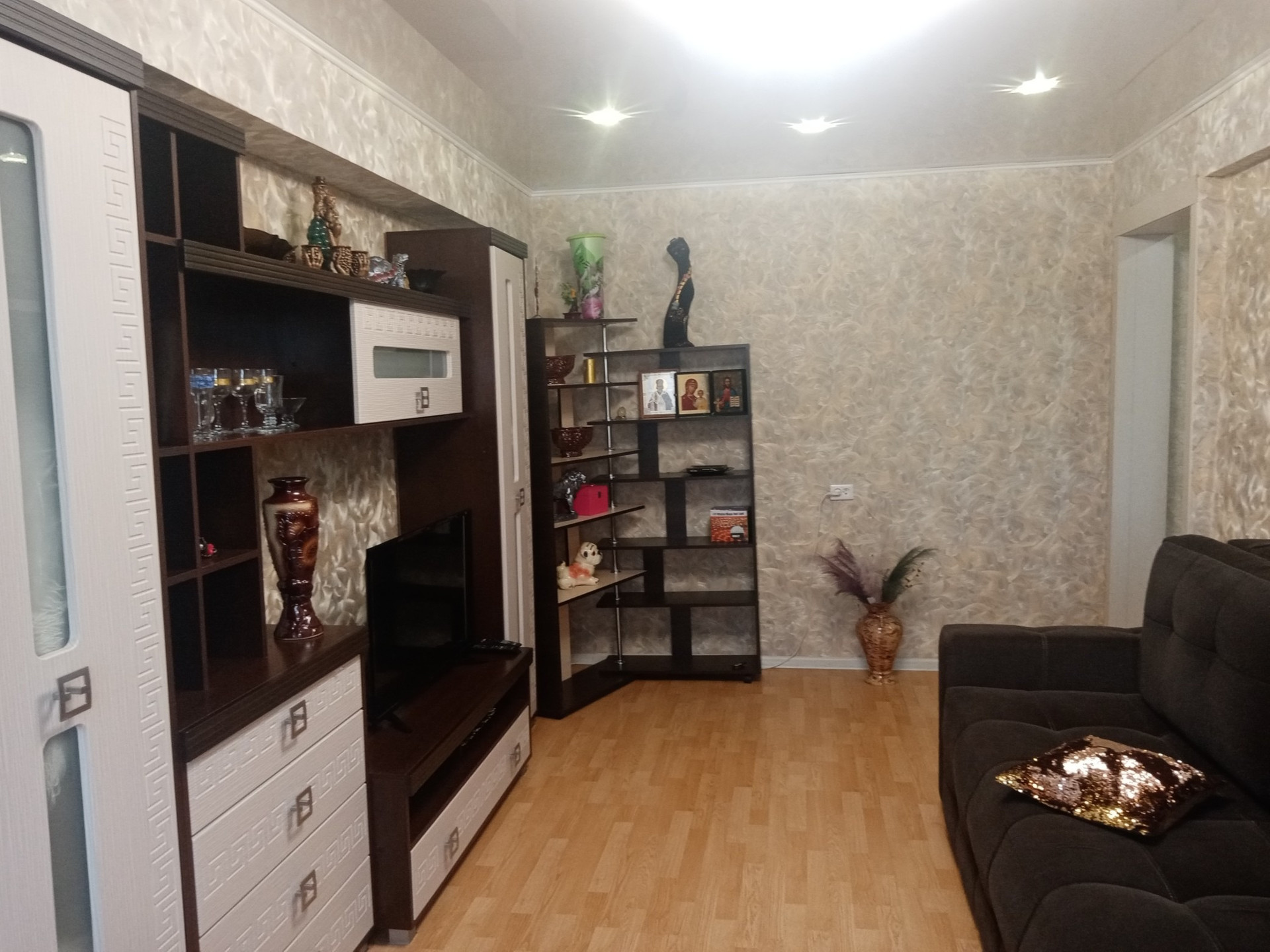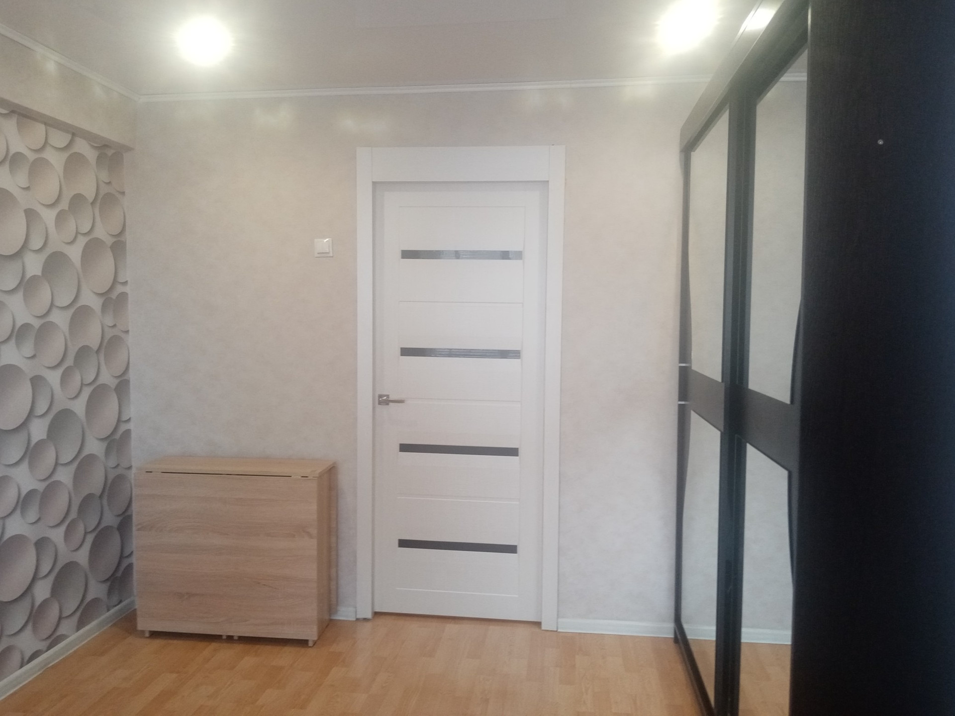 В квартире натяжные потолки, комнаты раздельные, санузел раздельный, пластиковые окна, межкомнатные двери, ламинат на полу.