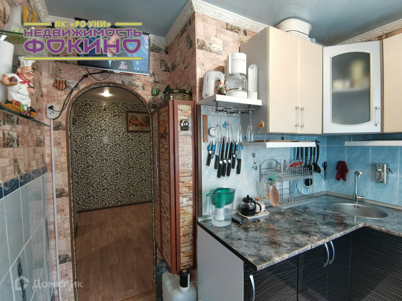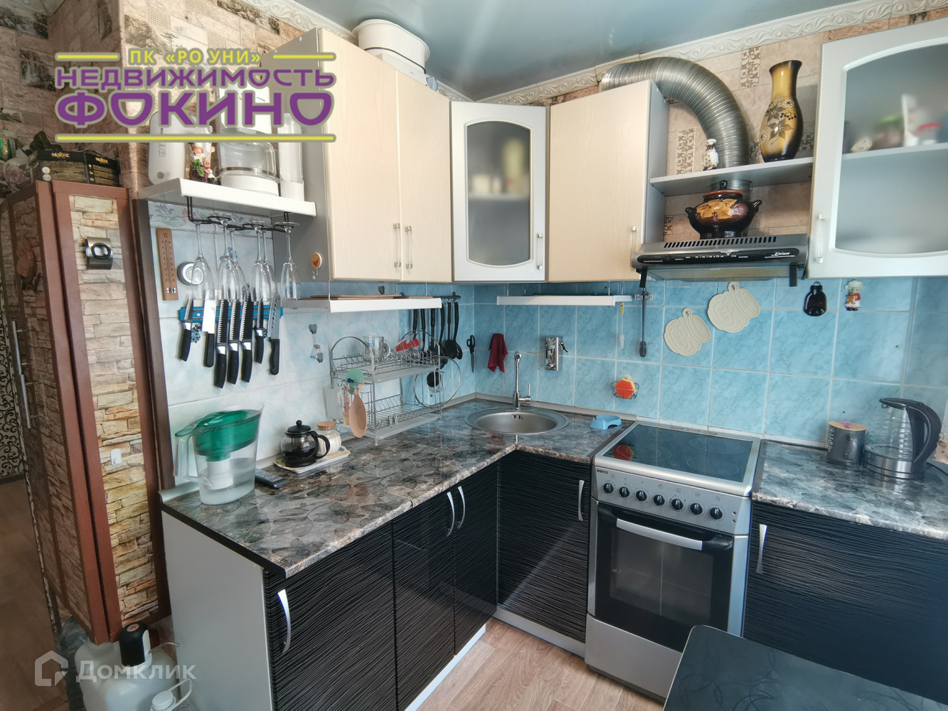 + На кухне отделка фартука и частично стен кафельной плиткой.