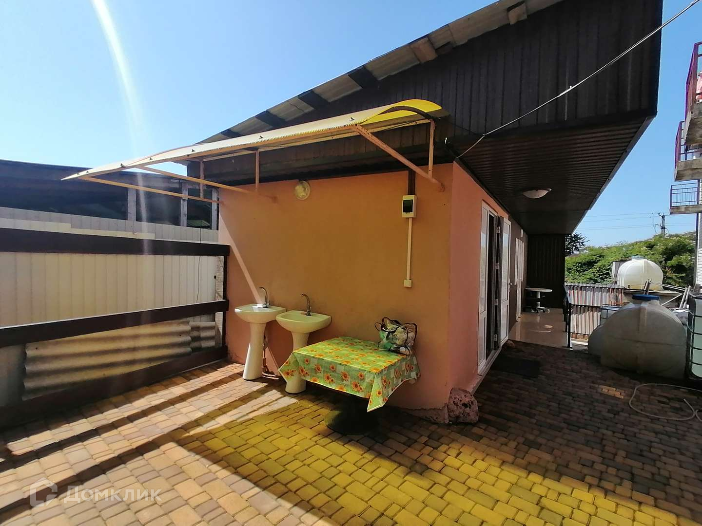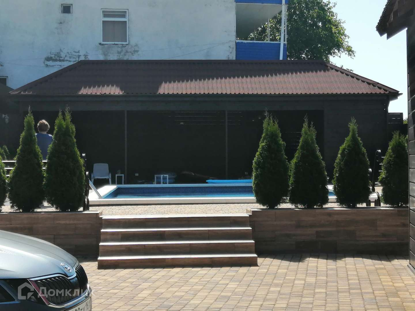 На территории Гостевого дома: бассейн размером 6,5*10,5, оборудованная кухня-столовая, летние душевые и туалеты, парковка под авто на 20 машин, террасы, зоны отдыха, мангальная зона.