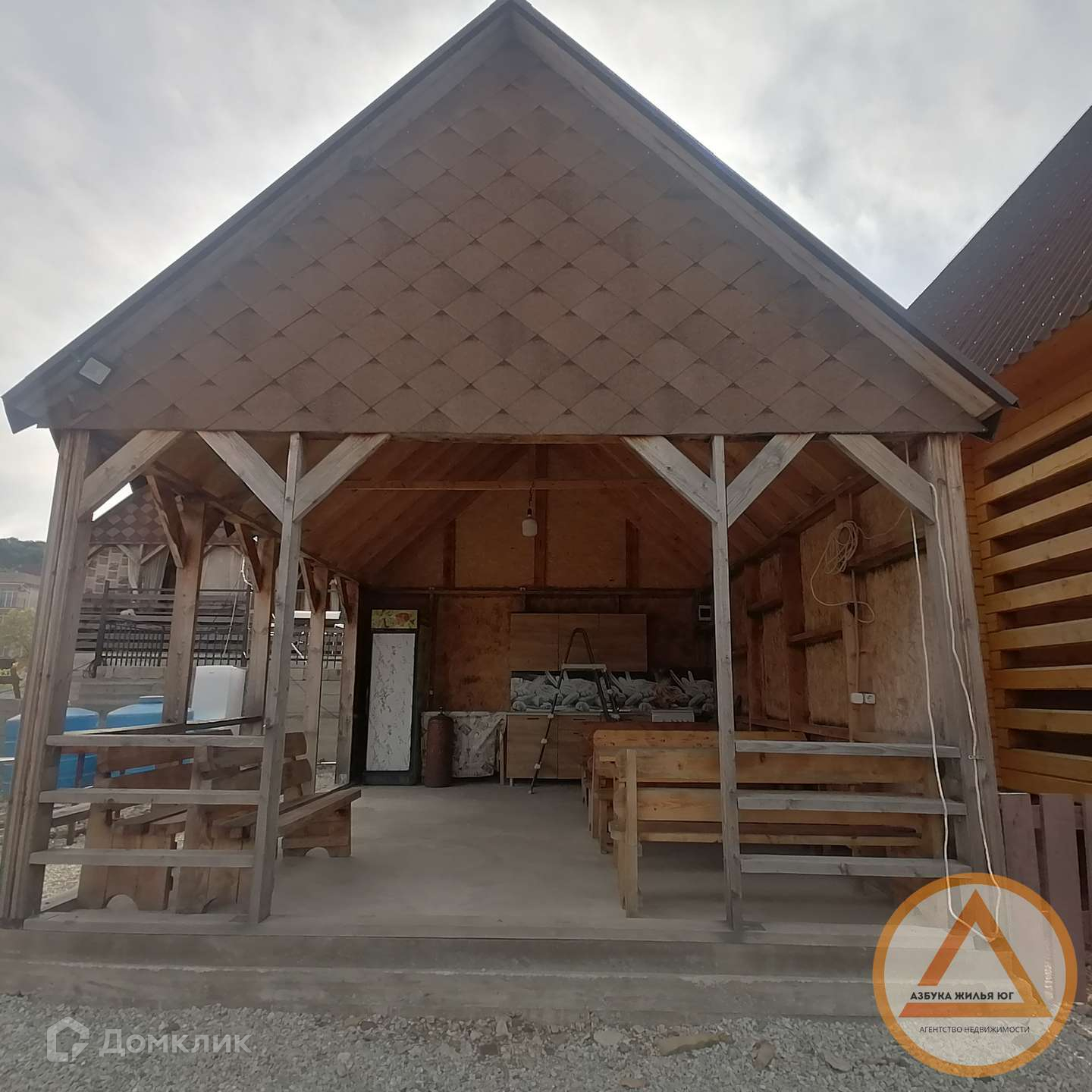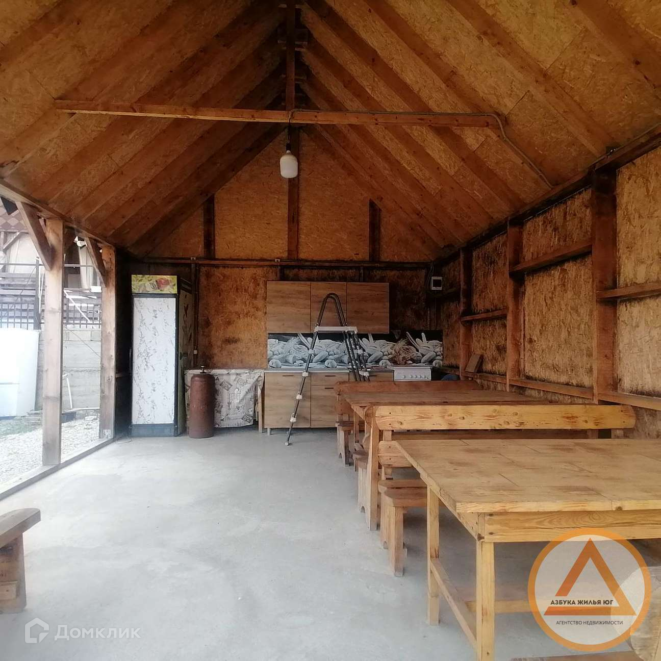 Домики и беседка укомплектованы всей необходимой мебелью и техникой (телевизор, сплит-система, холодильник, постельные принадлежности, кухонный гарнитур, и вся кухонная утварь.