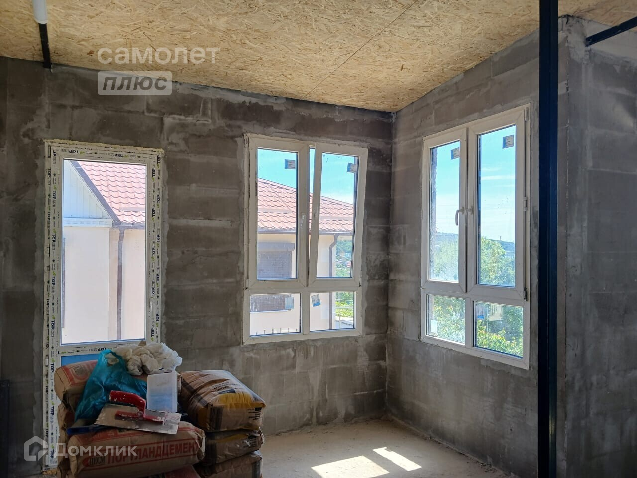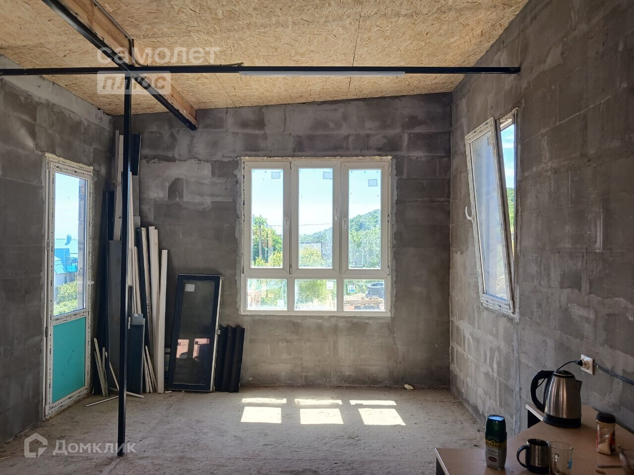 Новый дом. Готовая коробка. Пол бетон. Крыша ондулин утеплена. Стены газоблок