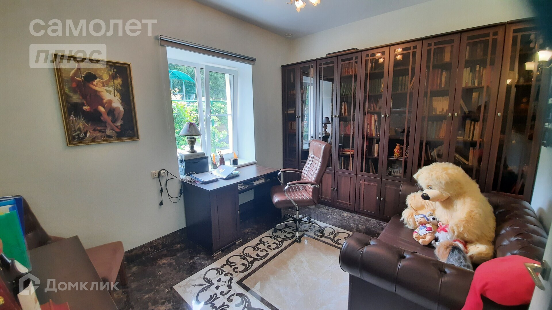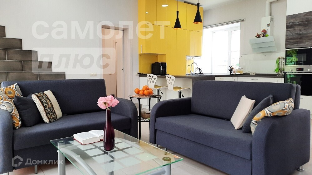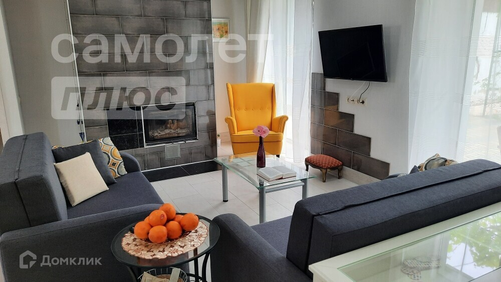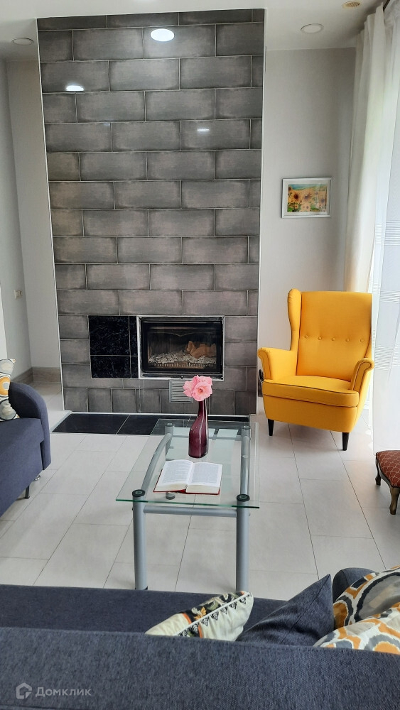 На первом этаже расположена просторная кухня-гостиная с камином, уютная спальня с вместительной гардеробной, кабинет, два санузла и еще одна гостевая спальня. Все комнаты с мебелью и техникой.