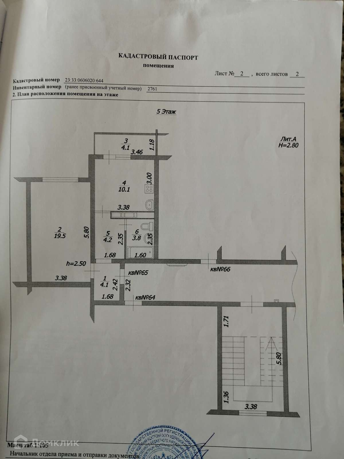 1-комнатная квартира, 41.7 м2, этаж 5 / 5, на продажу в поселке городского типа Джубга, улица Строителей, 2