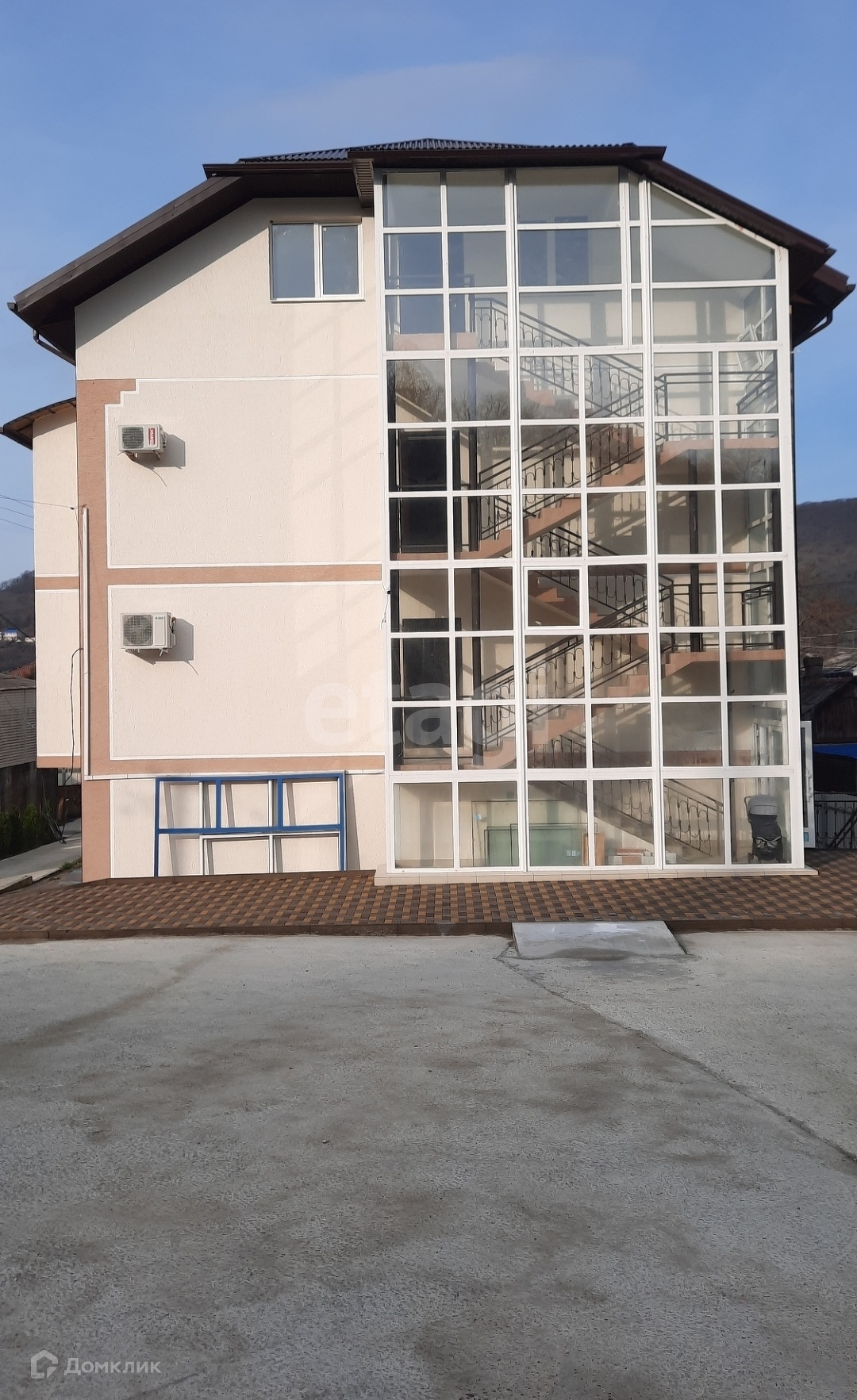 Современный, новый дом со своим внутренним двором, паркингом и детской площадкой.