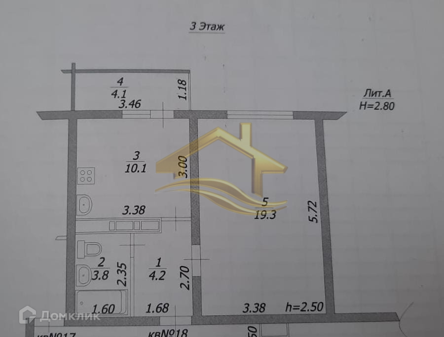 1-комнатная квартира, 37.4 м2, этаж 3 / 5, на продажу в поселке городского типа Джубга, улица Строителей, 2