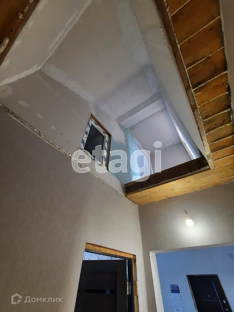 Мансардная крыша, там предполагается еще 2 комнаты, стены уже зашиты гипсокартонном.