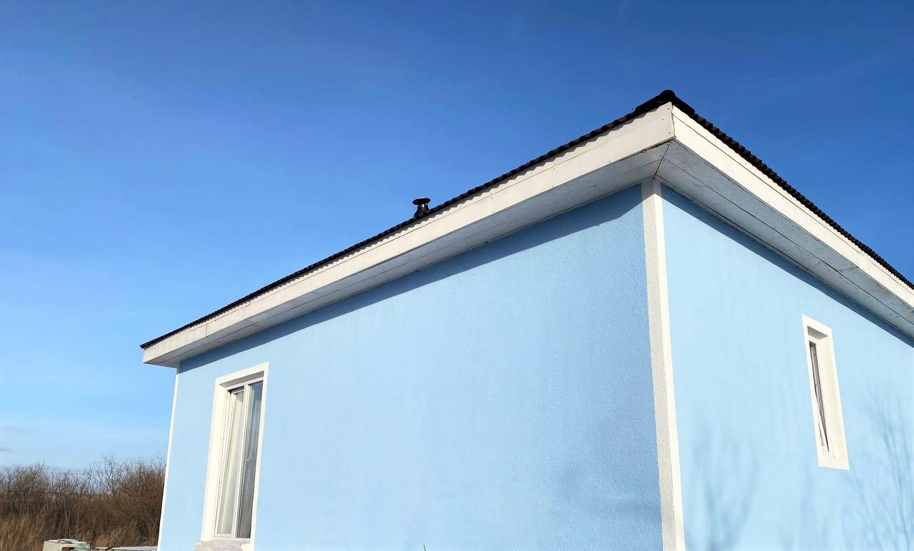- стены из газобетона D400, с наружи декоративная камешковая штукатурка с покраской, внутри стены оштукатурены кафельным клеем