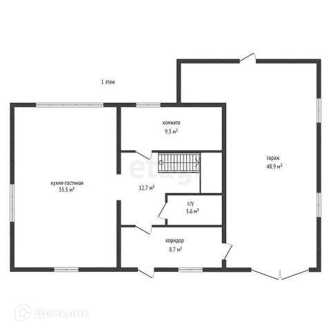 На первом этаже: просторная кухня-гостиная, гостевая комната, санузел (с душем).