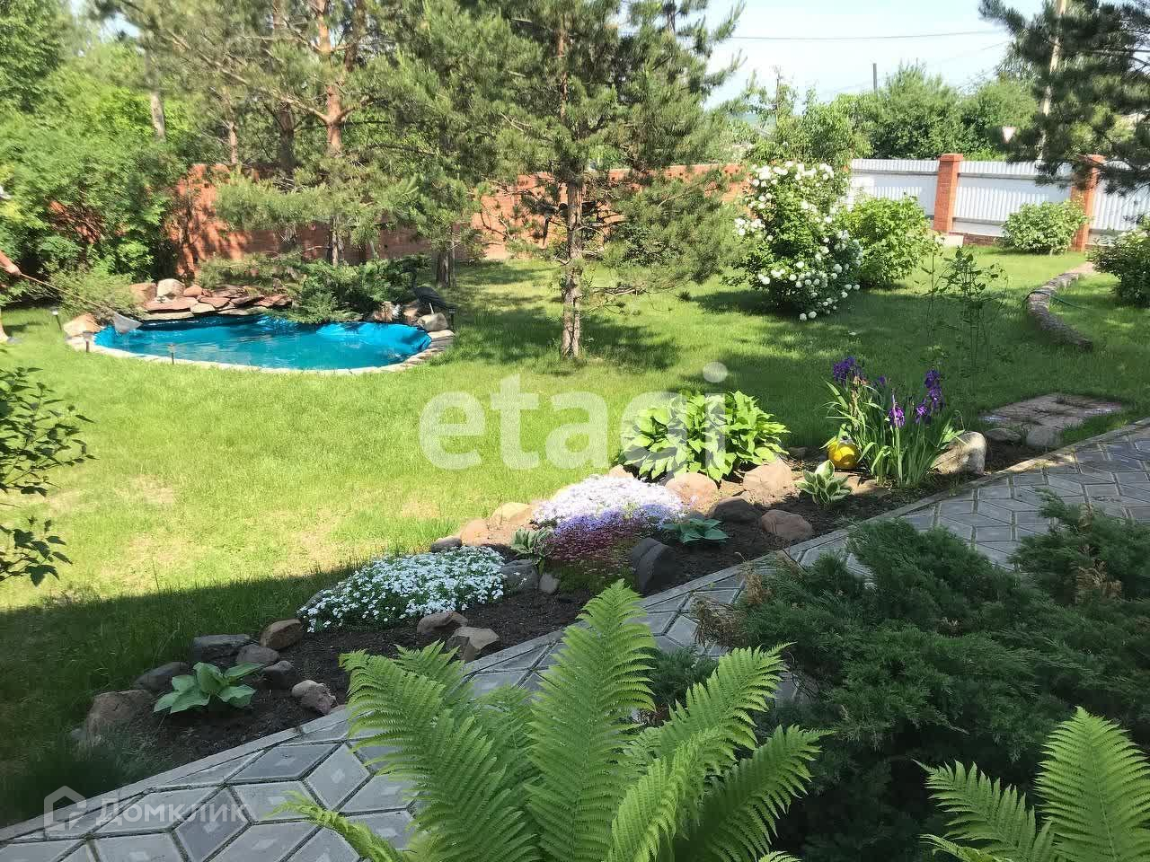 18 соток земли: сарай, теплица, металлическая емкость под воду 5м3, ухоженный газон, искусственный водоем, много цветов, и плодовых кустов (жимолость, смородина, малина) и деревьев (яблони, груша, слива), кедр плодоносит, сосны, береза, рябина, ель сибирская и голубая, липа, сирень, маньчжурский орех.