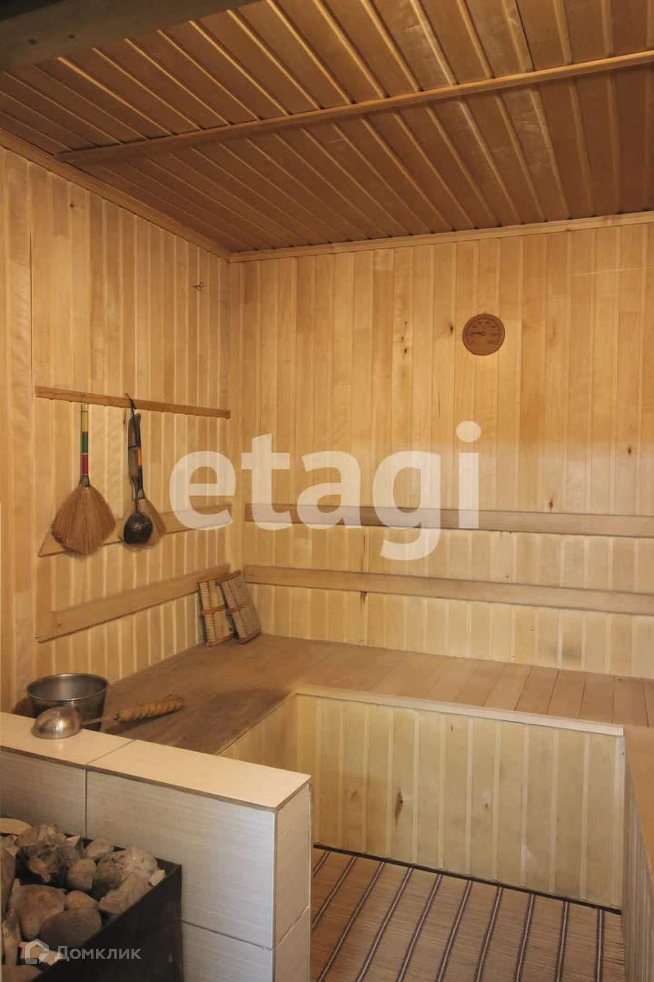 Фундамент из бетонных блоков, второй этаж мансардный из бруса, крыша алюминиевая, 5 комнат: зал - 40м2, кухня-столовая - 23м2, 2 спальни по 20м2, кабинет - 9м2, гостевая - 11м2, санузел, сауна, выход в гараж на 2 машины.