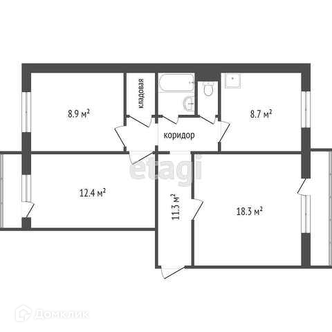 Общая площадь 60.5 м2