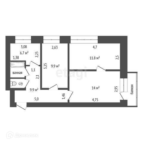 Общая площадь 57.1 м2