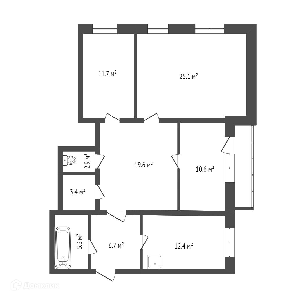 Кухня 12,4 кв.м. Сохранено количество комнат. Сейчас по расположению комнат, квартира