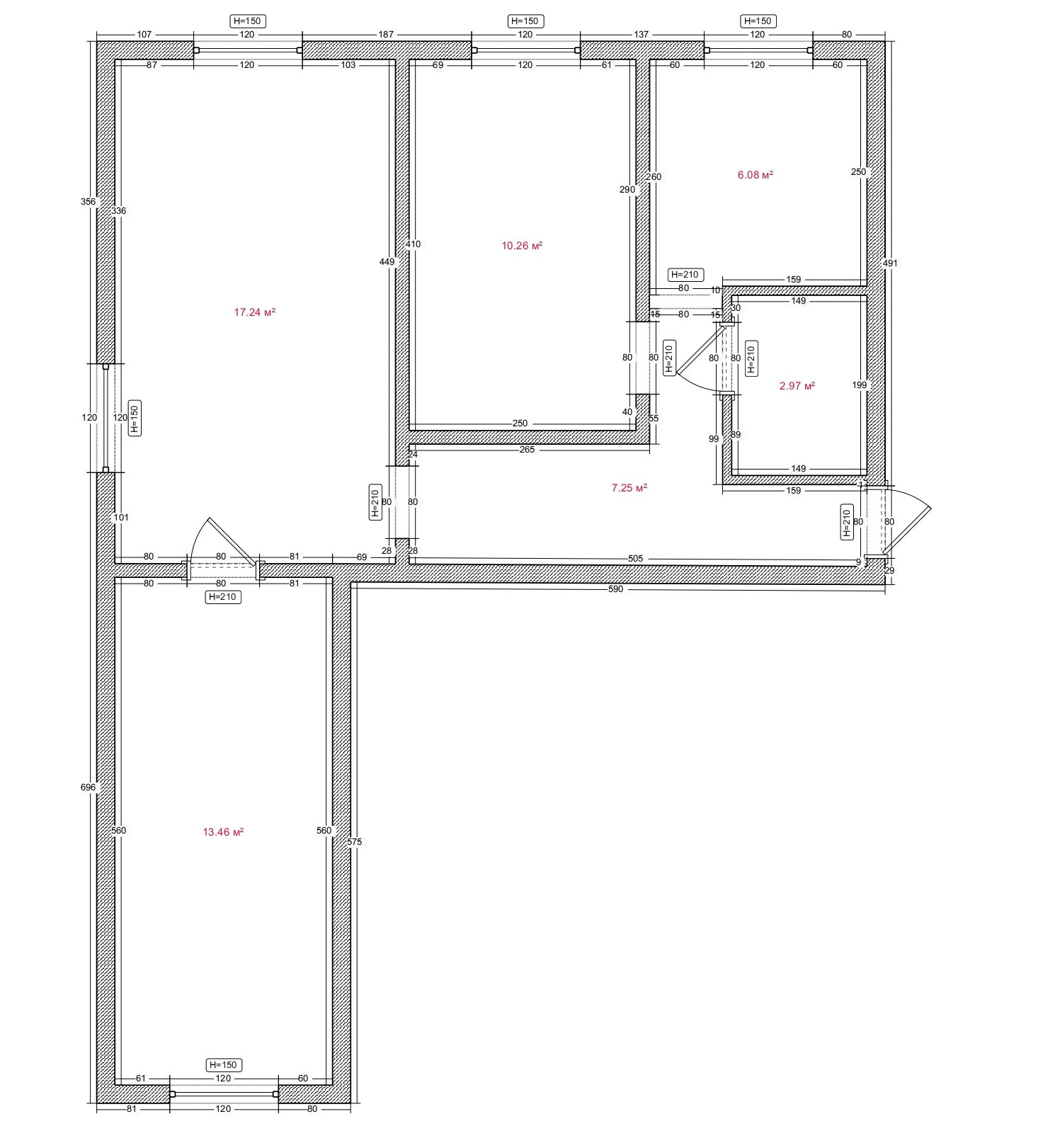 Общая площадь 56 м2