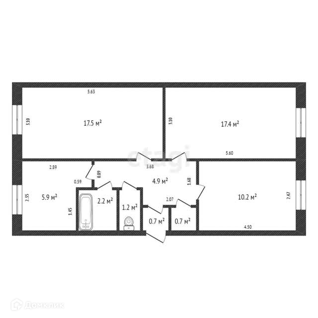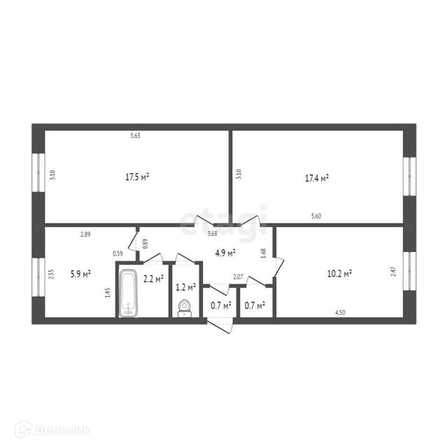 Общая площадь 61.7 м2