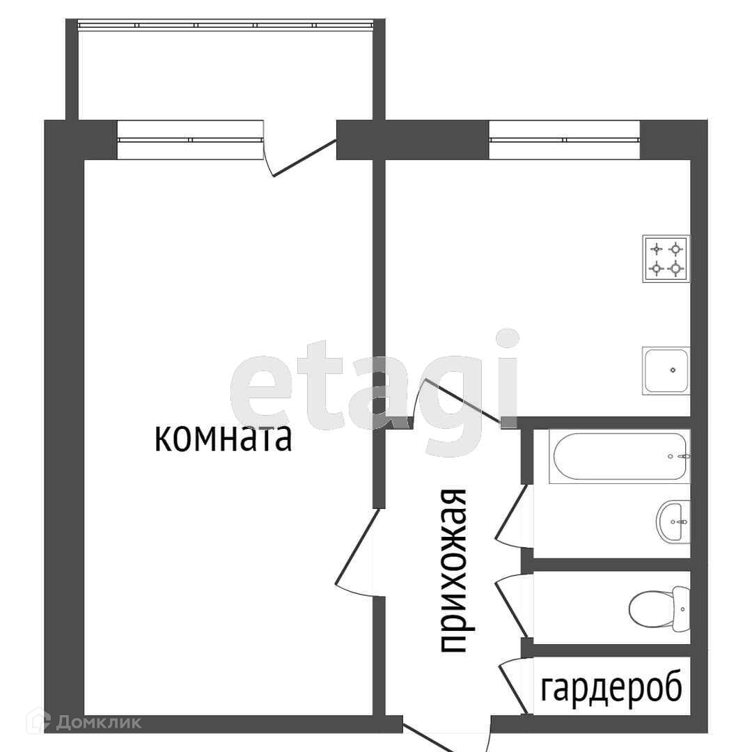1-комнатная квартира, 33.8 м2, этаж 2 / 5, на продажу в поселке городского типа Емельяново, улица Аэропорт, 4