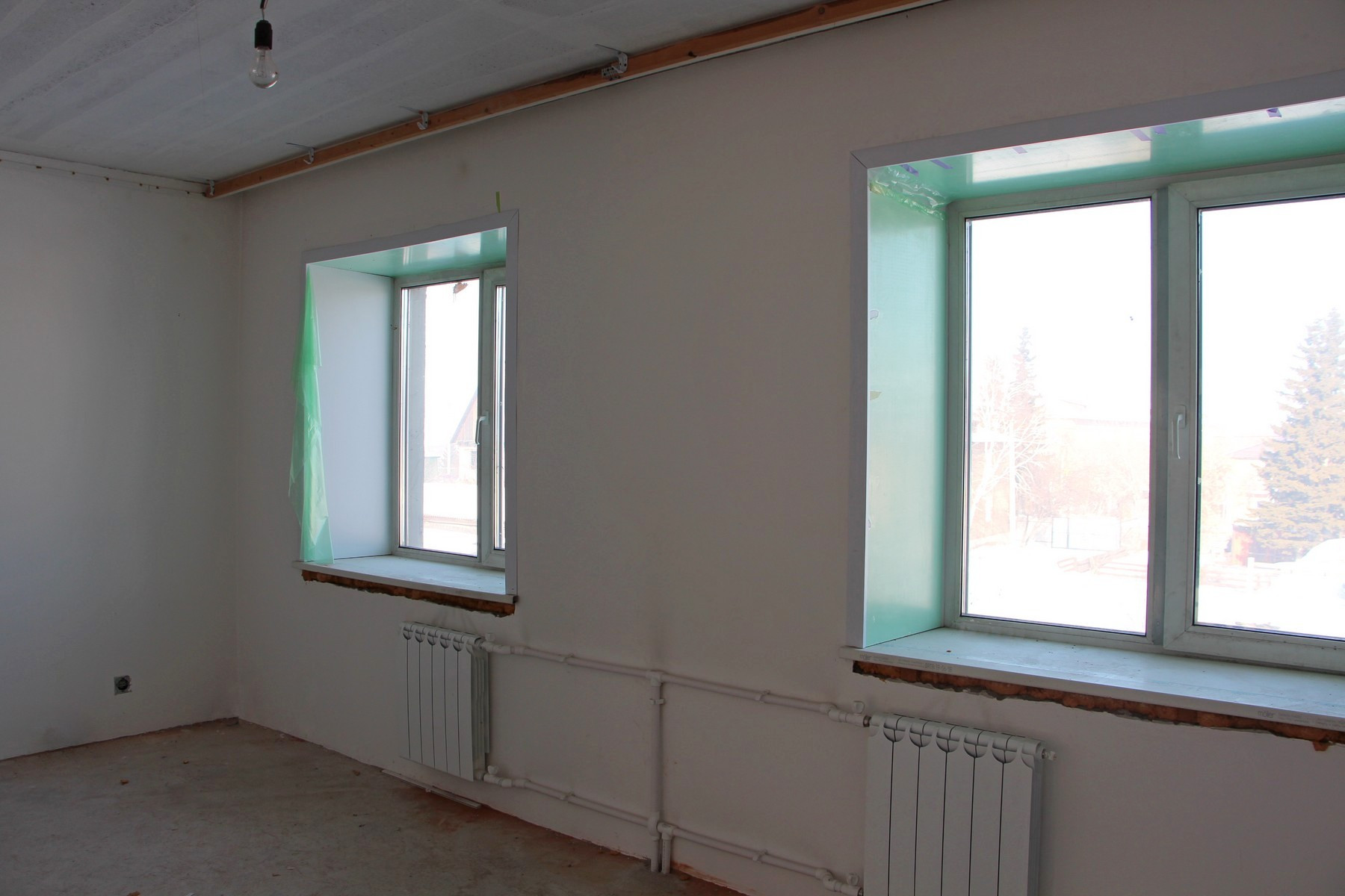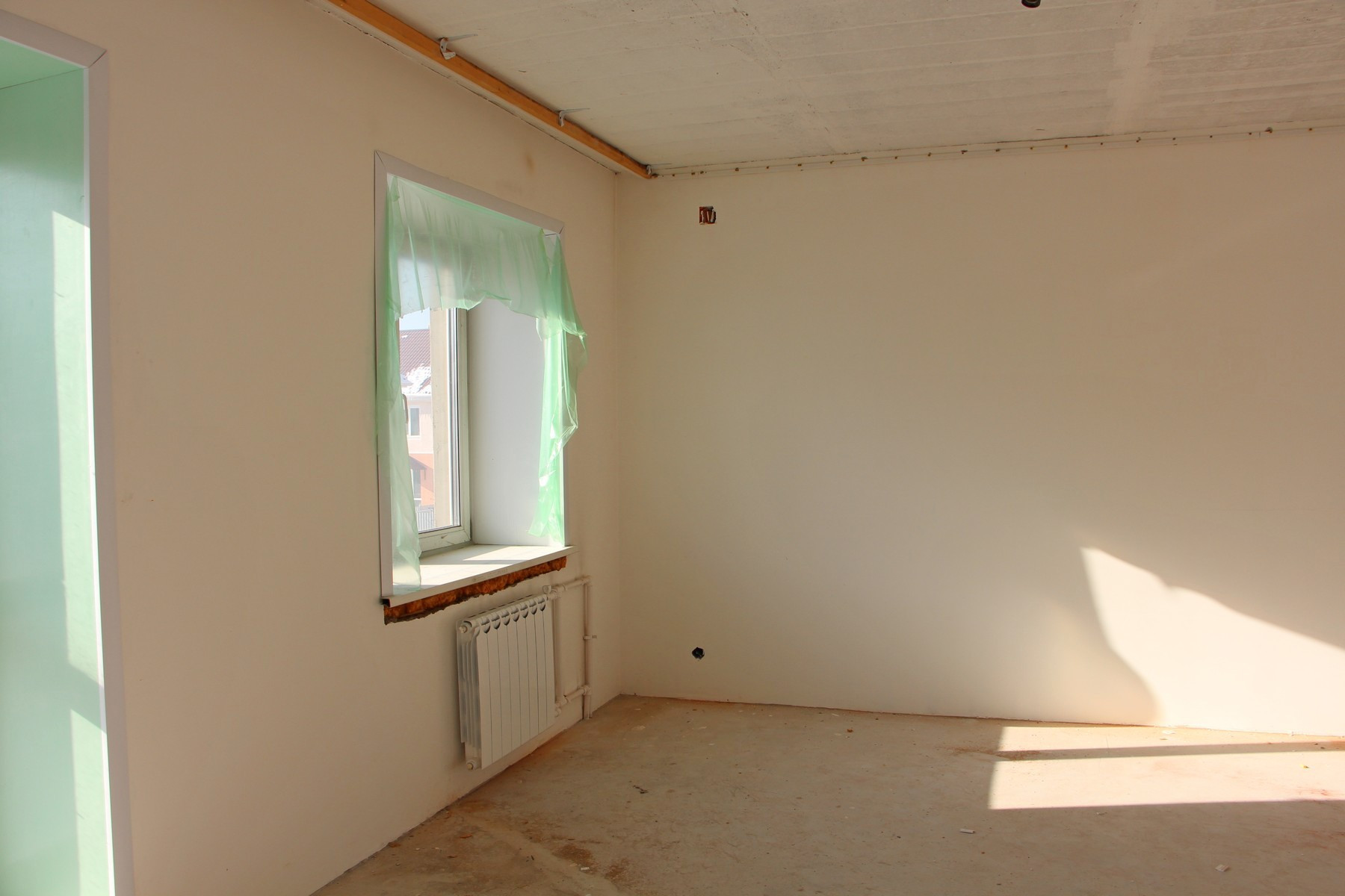 Отделка – белая штукатурка, стяжка на полу.